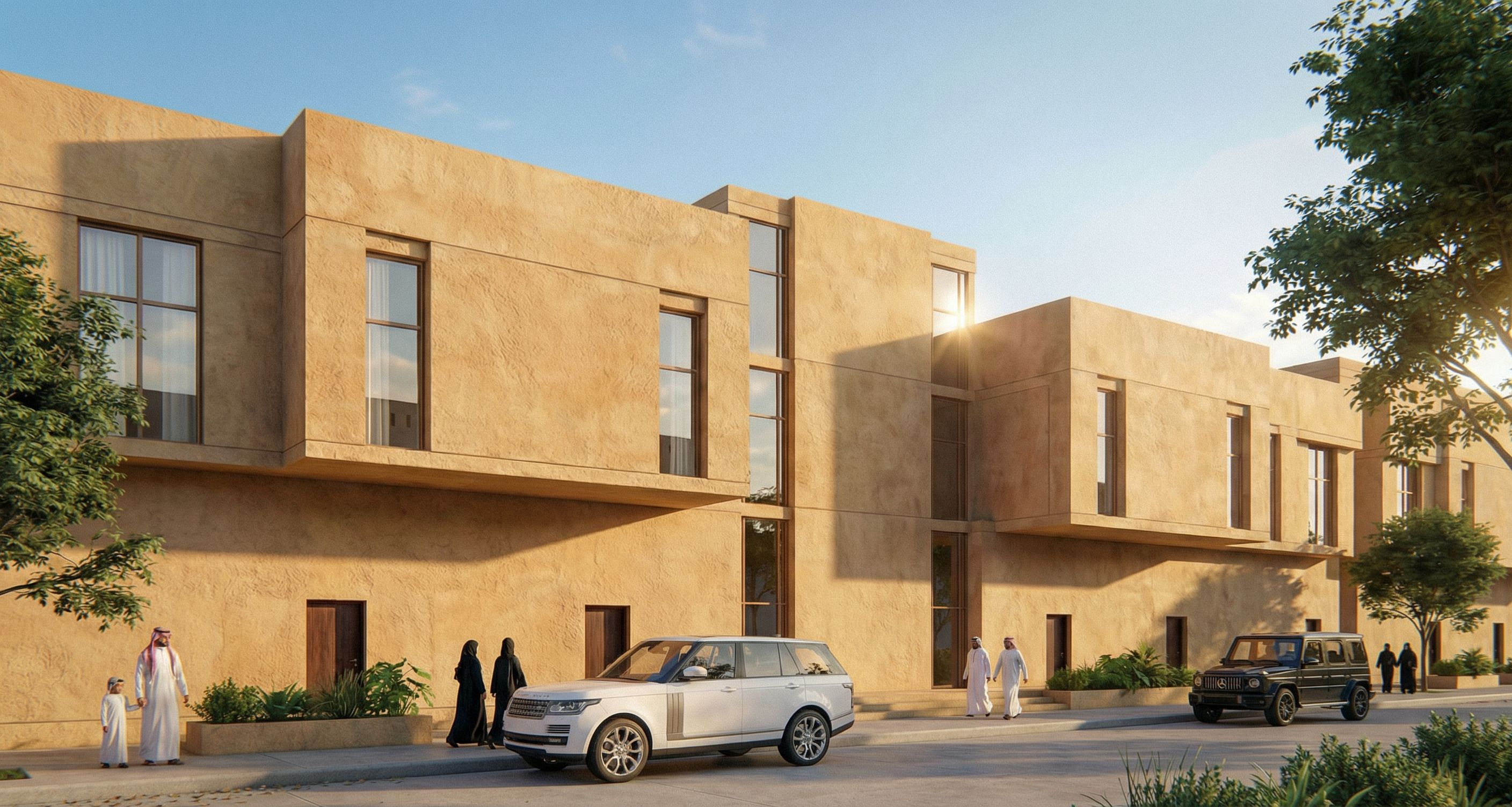 add saudi families & 2 cars, keep exact camera angle