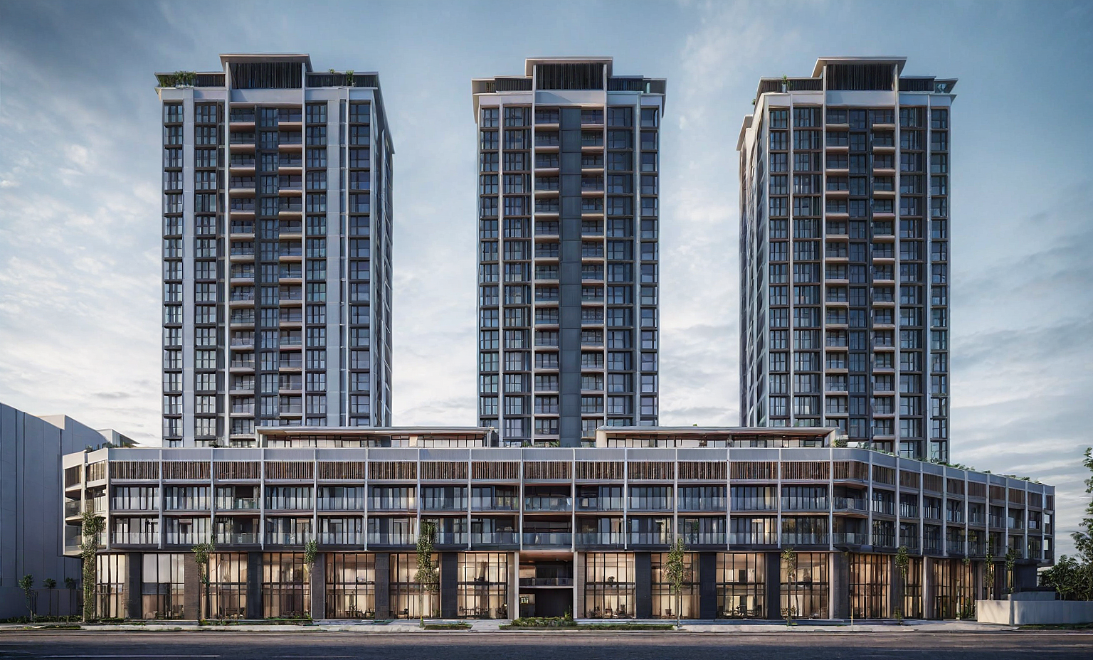 PromptMODERN RESIDENTIAL MIXUSED BUILNG IN AN URBAN CONTEXT