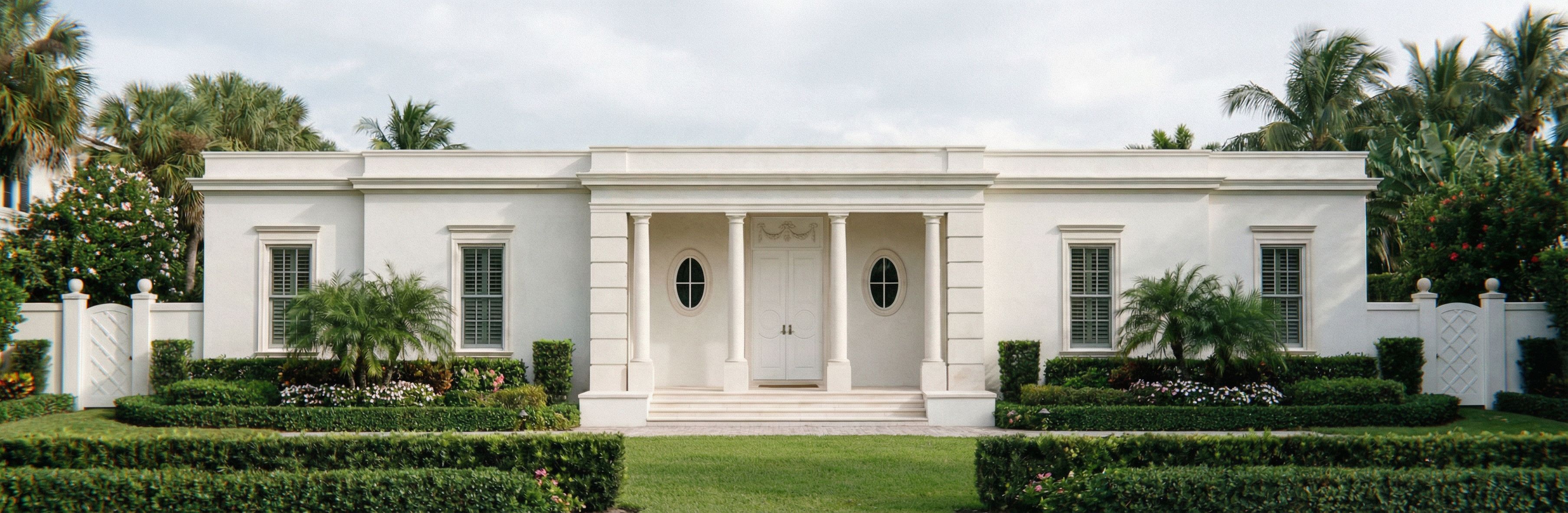 PromptChange only what i tell you. the transom panel above the front door should be a solid plaster panel not glass. it should have an elegant, refined simple plaster regency motif on it, , keep exact camera angle