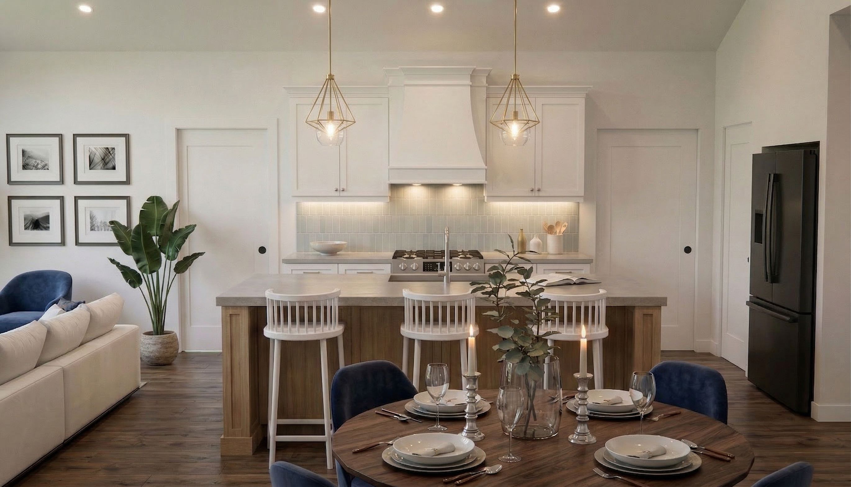 Promptclose both white pocket doors on either side of cabinets, show a black circle pocket handle on the right hand side of both doors, keep exact camera angle