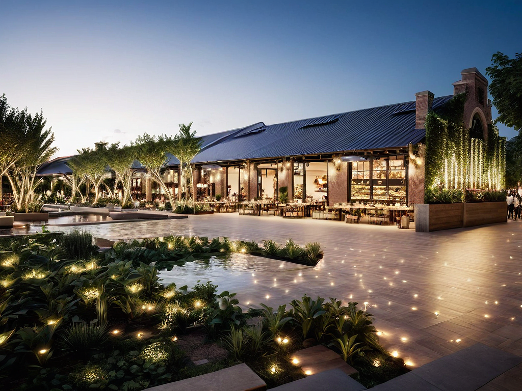 food hall, amazing garden, same construction materials, same facade, amazing terrace