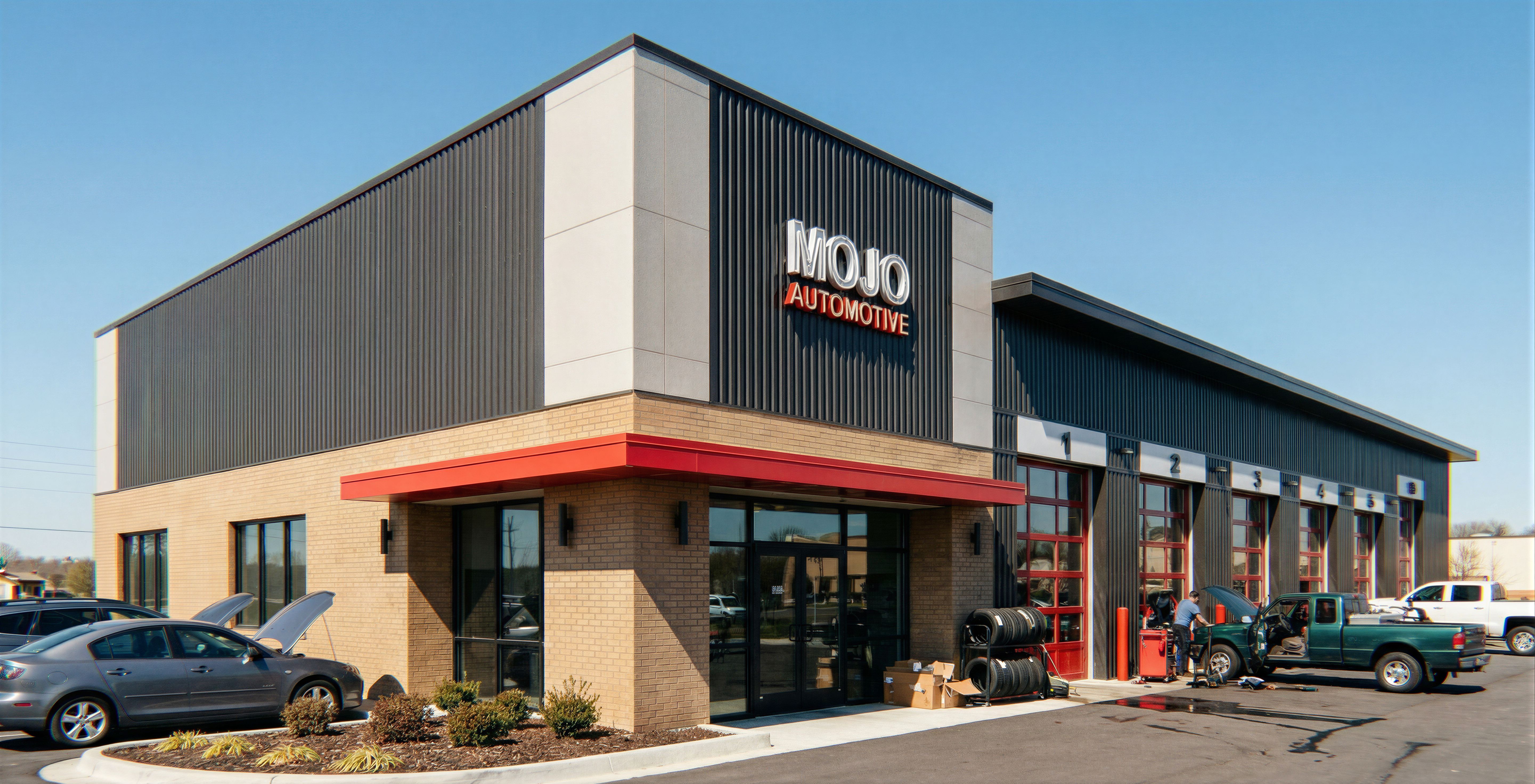 Change lighting to daylight and change surroundings to match that of a car repair shop. Use the SAME camera angle as image. DO NOT change anything else about this image., keep exact camera angle