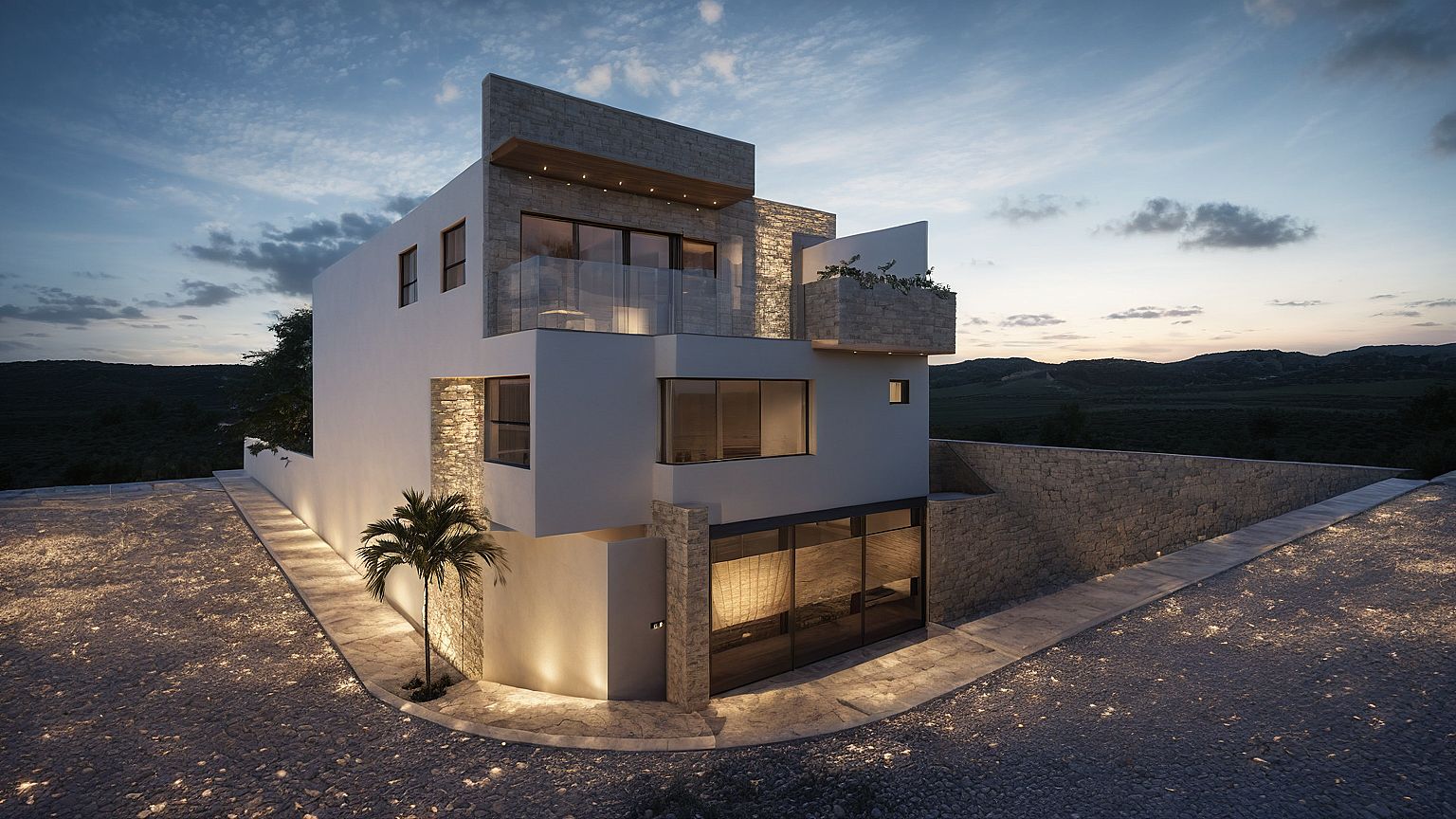 Promptkeep travertino marble and galarza stone. Noun day, almost night. higlights from interior