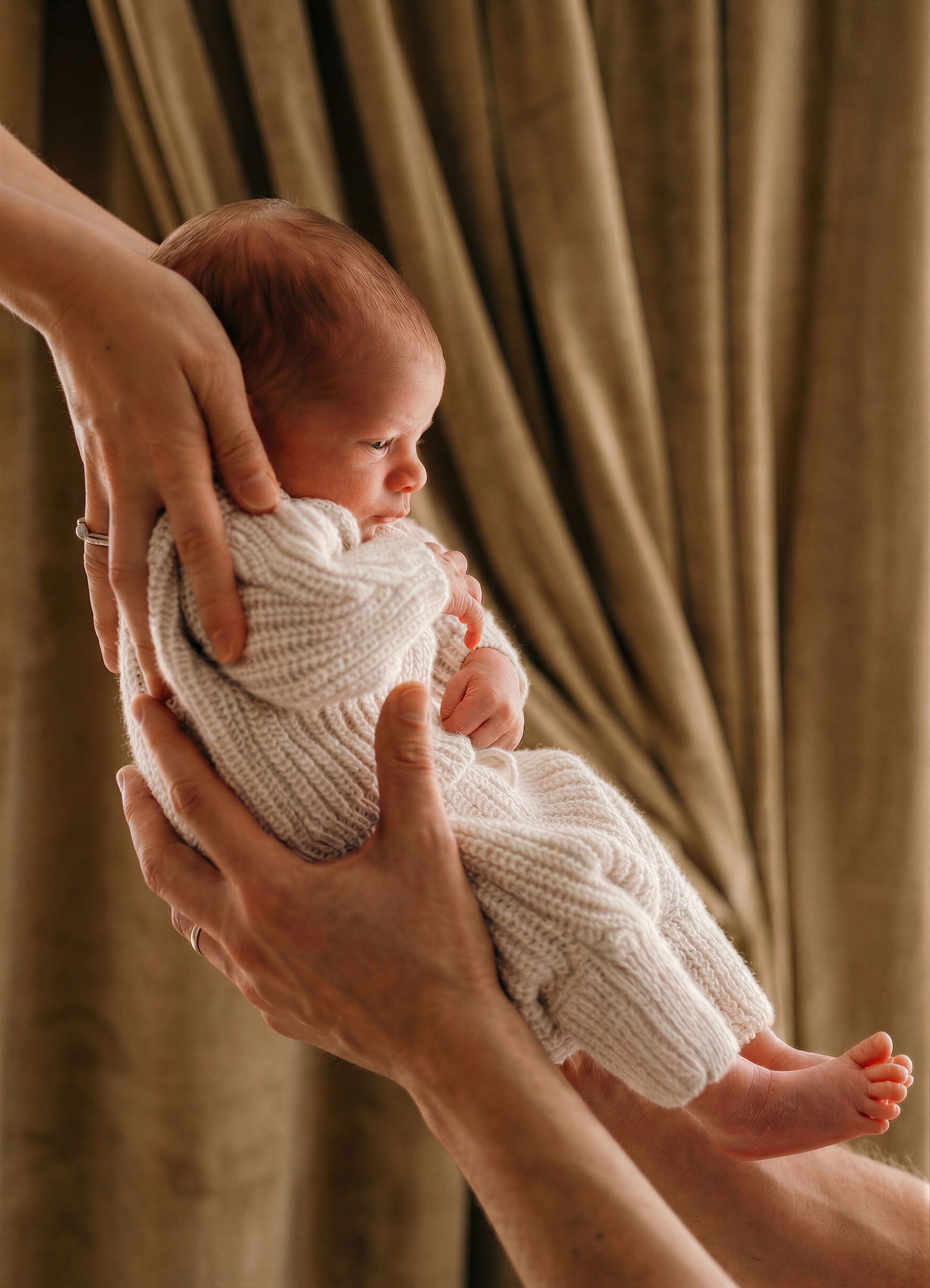 replace the curtain color with a dove-gold., keep exact camera angle