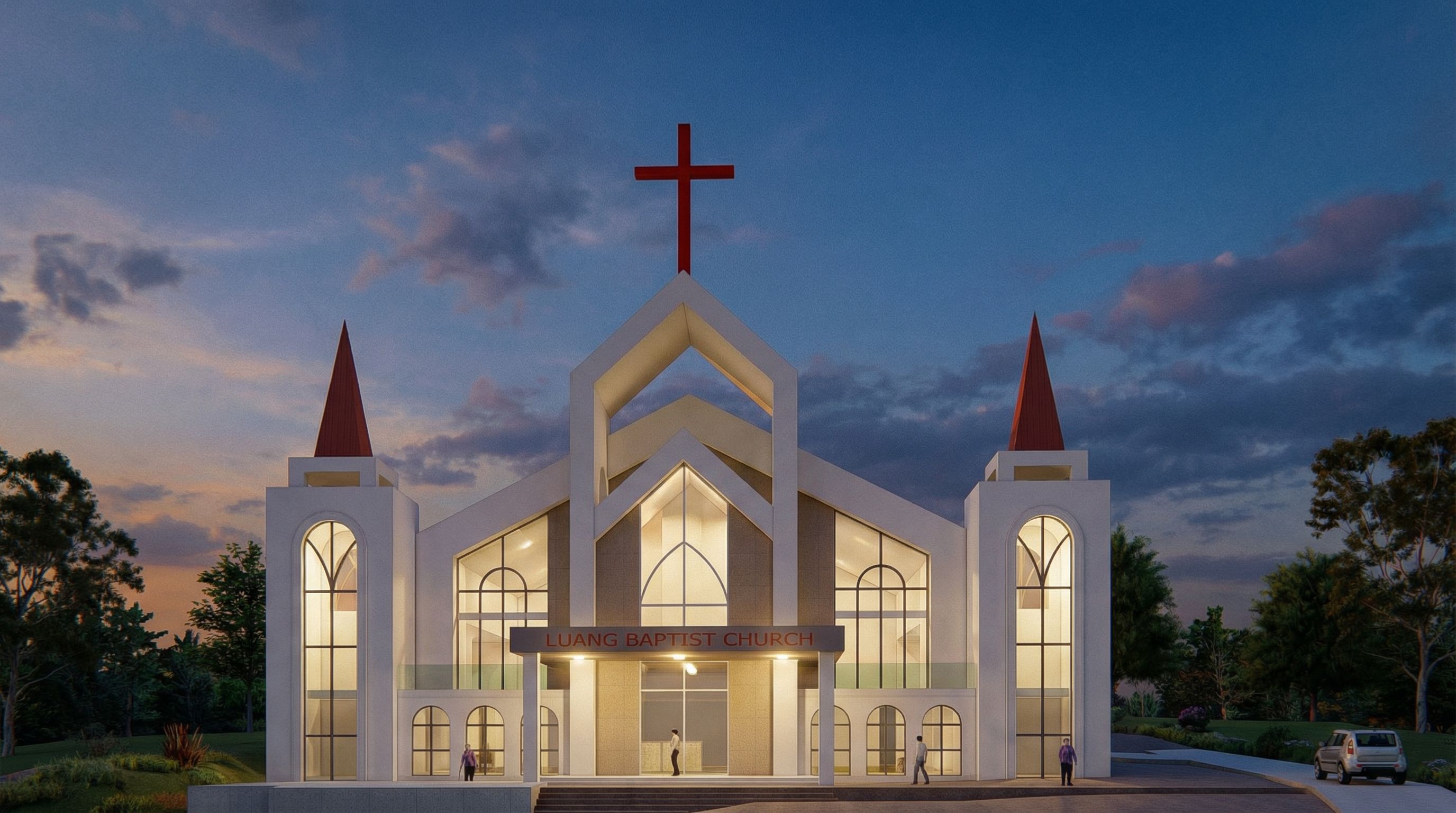 PromptA MINIMALIST CHURCH DESIGN, SUPER REALISTIC RENDER, ADD DETAILS, AMIC OF MODERN AND CLASSICAL architecture, keep exact camera angle