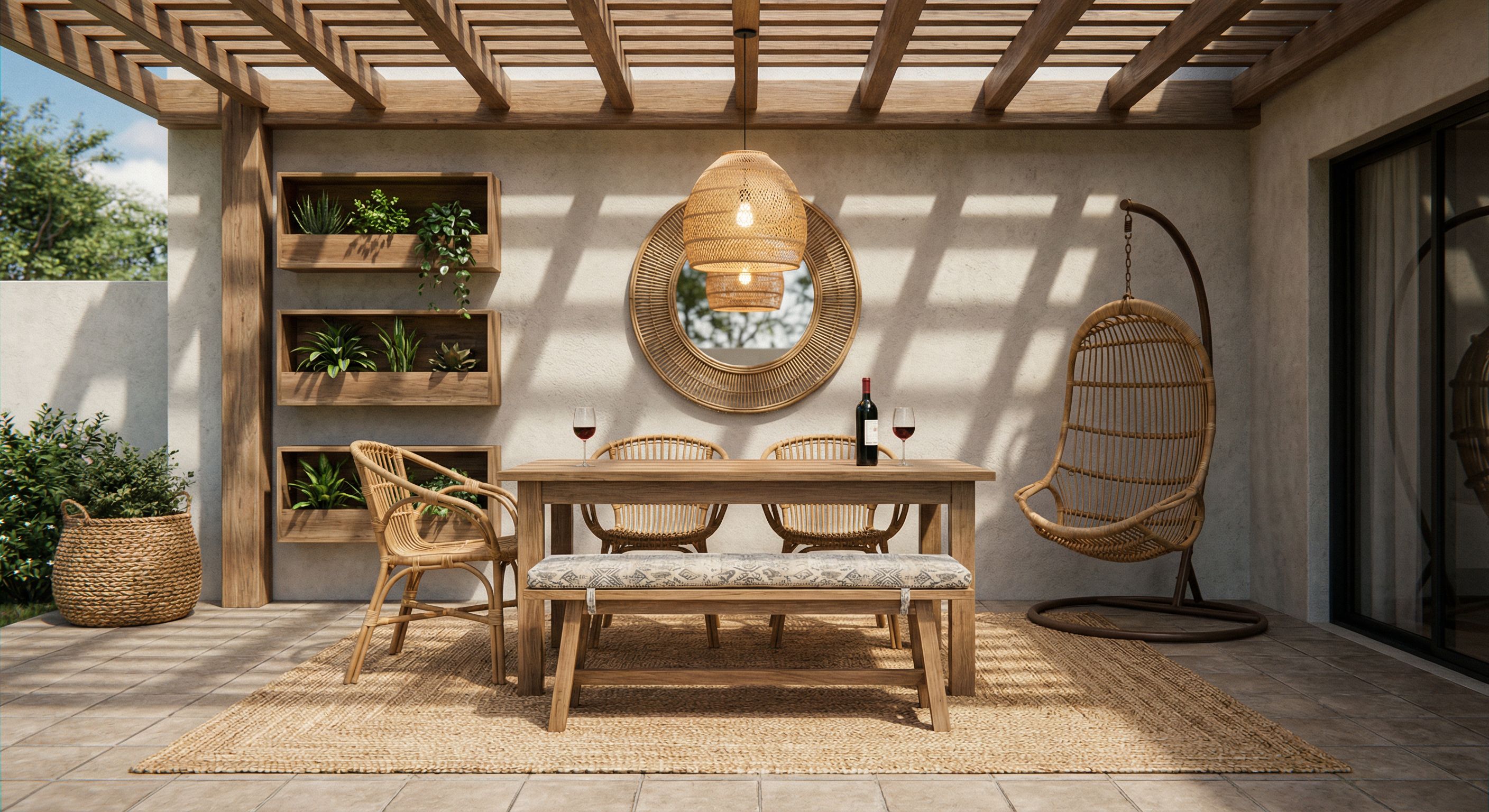 PromptPhotorealistic enhancement only. Strict geometry preservation. Do not modify, regenerate, re-arrange, rotate, add, or remove any bamboo canes. The bamboo ceiling layout, spacing, orientation, and quantity are locked and must remain exactly identical to the input image. No design changes, no reinterpretation, no AI creativity. Only improve lighting, shadows, material realism, texture sharpness, and overall image quality