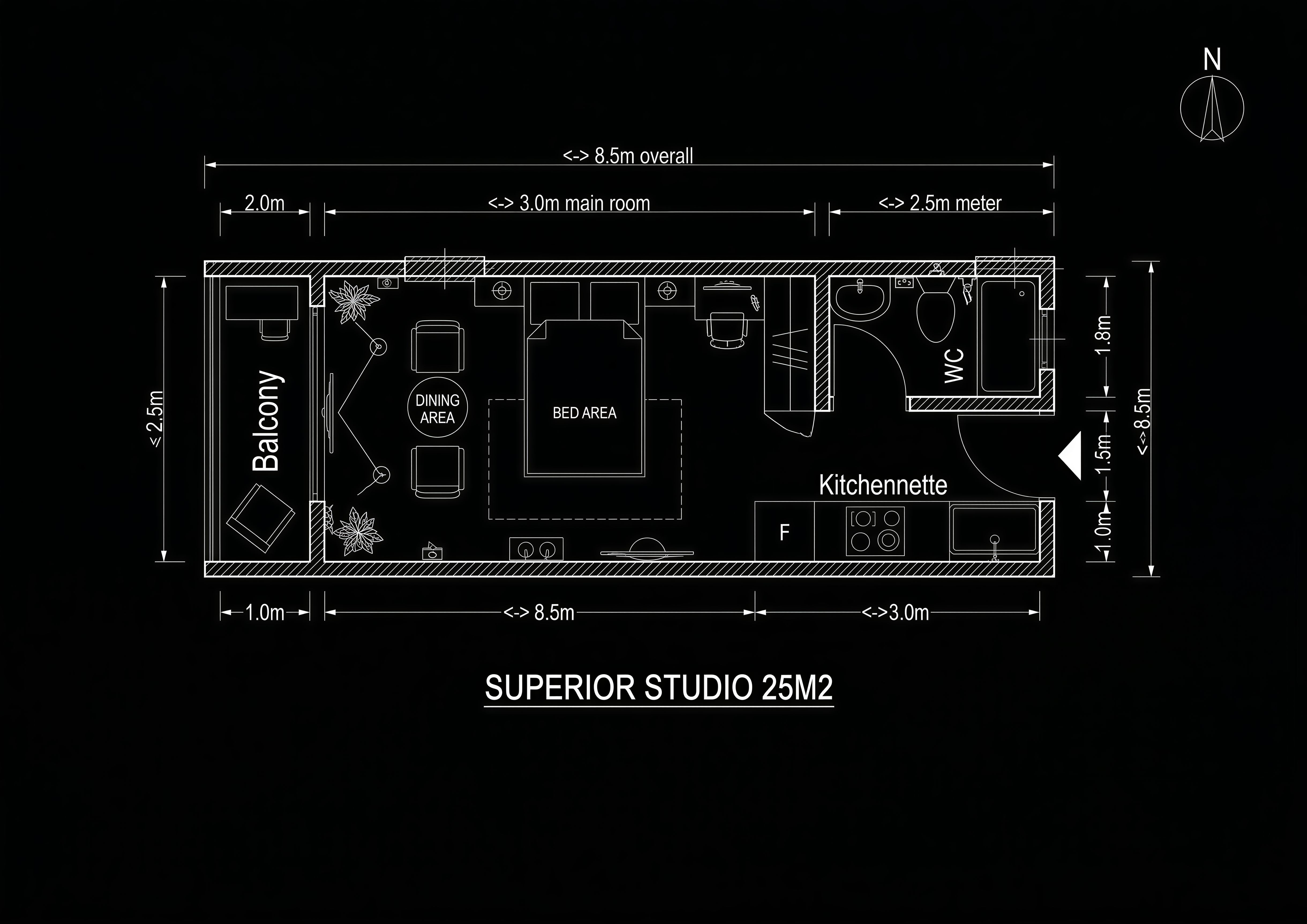 PromptMAKE A BLACK AND WHITE SKETCH WITH CLEAR PARTITIONS AND FURNITURE CLEARLY INDICATED WITH HAIRLINES WHITE COLOUR.