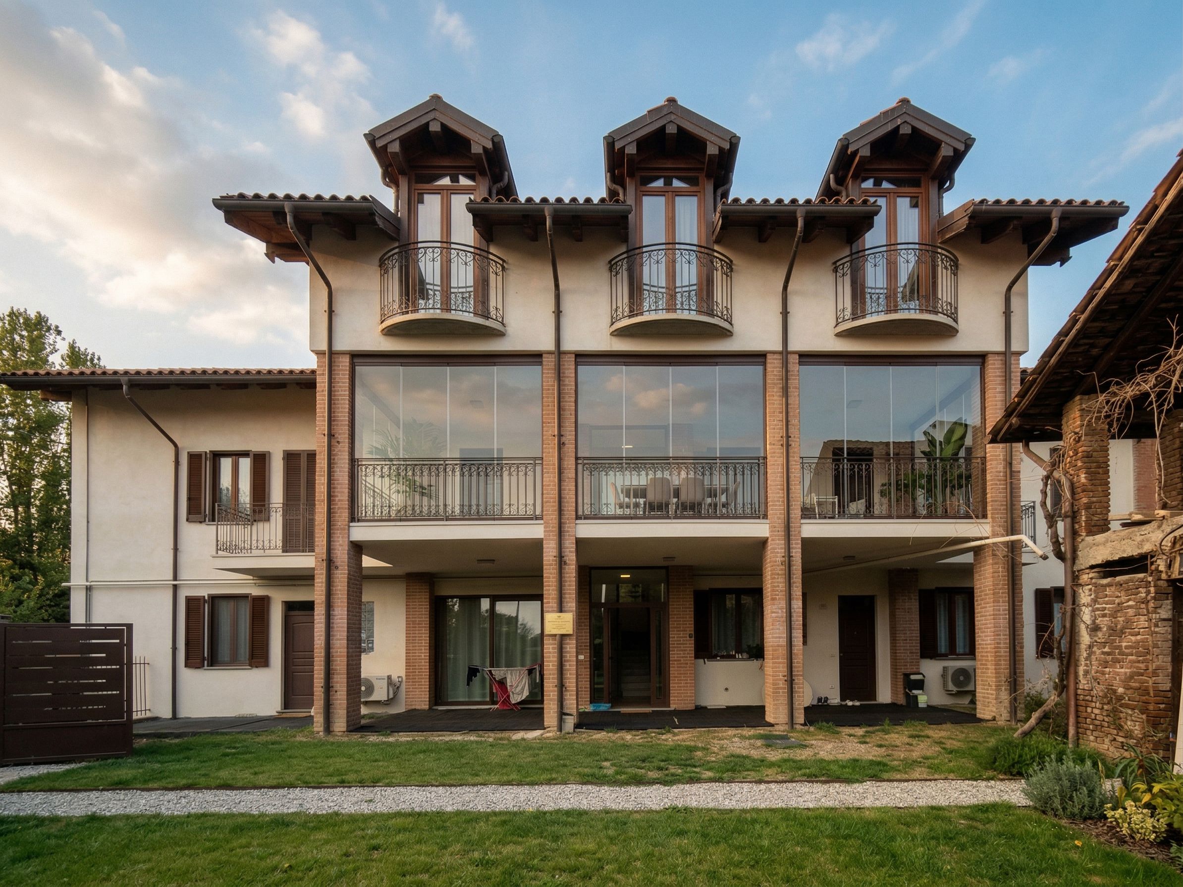 Promptcreate a realistic exterior render, and where you see the hand-drawn lines, draw a transparent glass window with brown profiles, keep exact camera angle