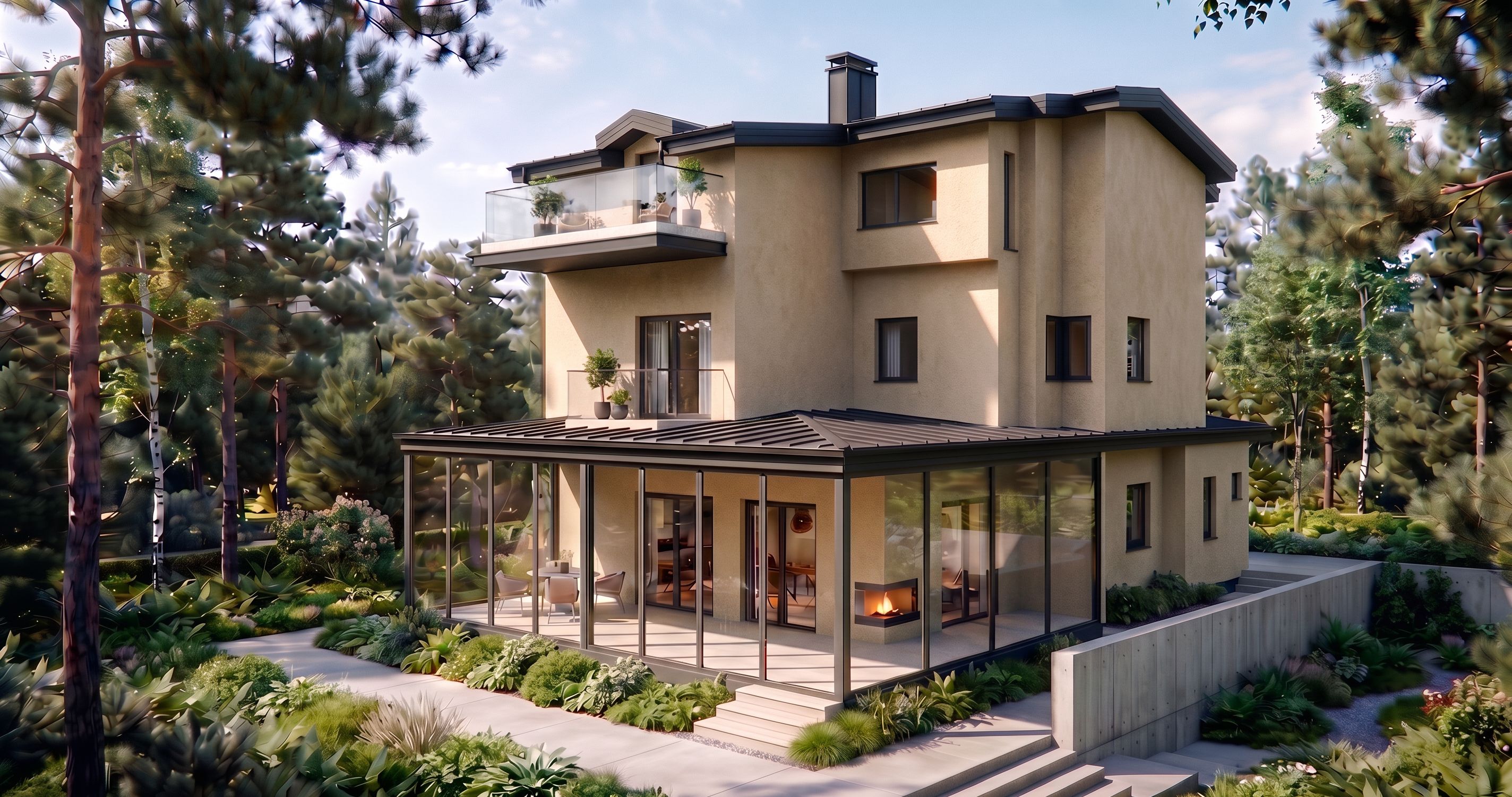 Prompt paint the building beige decorative plaster , keep exact camera angle