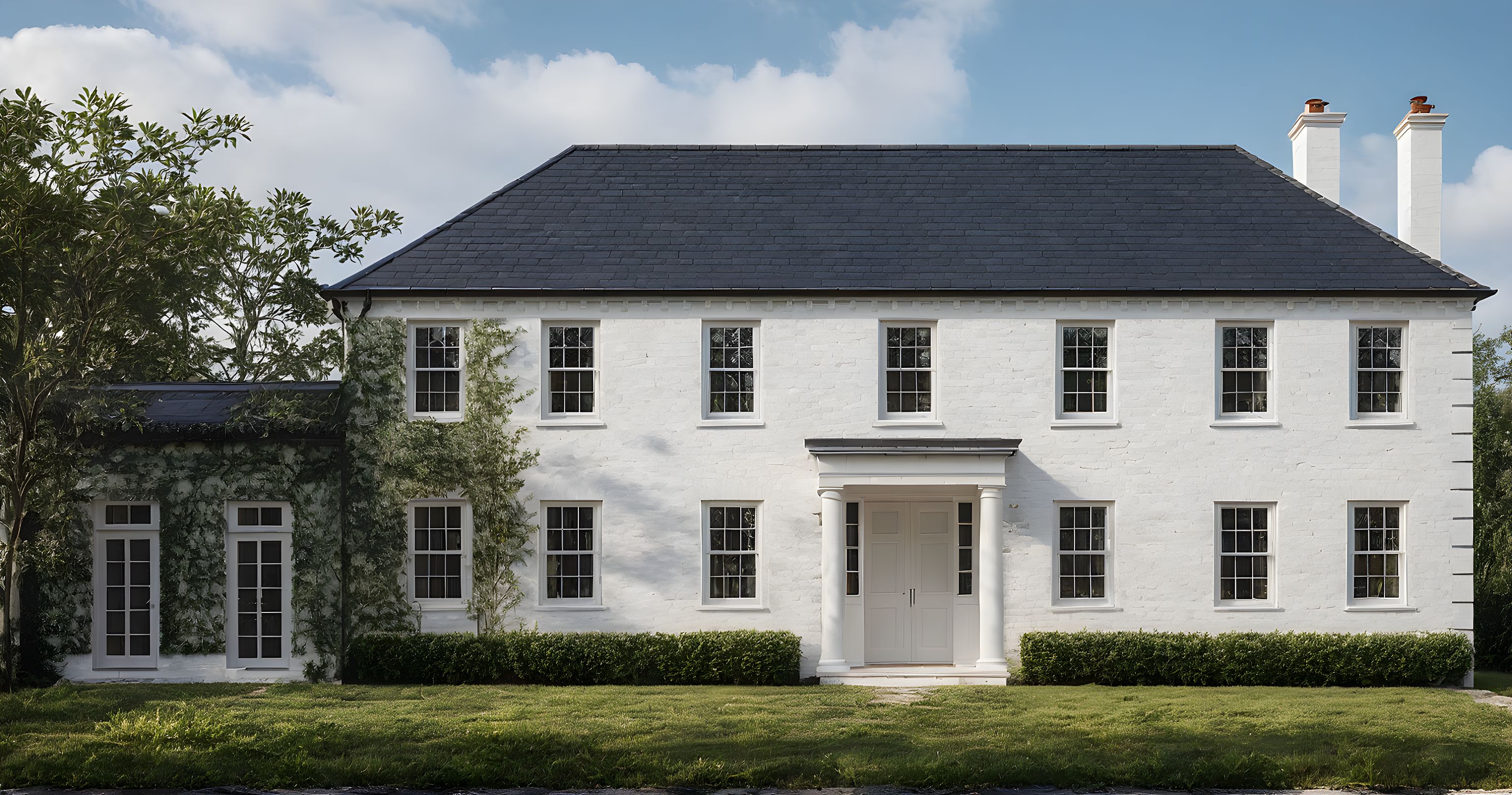 Promptkeep everything the same its a painted white brick house with a slate roof