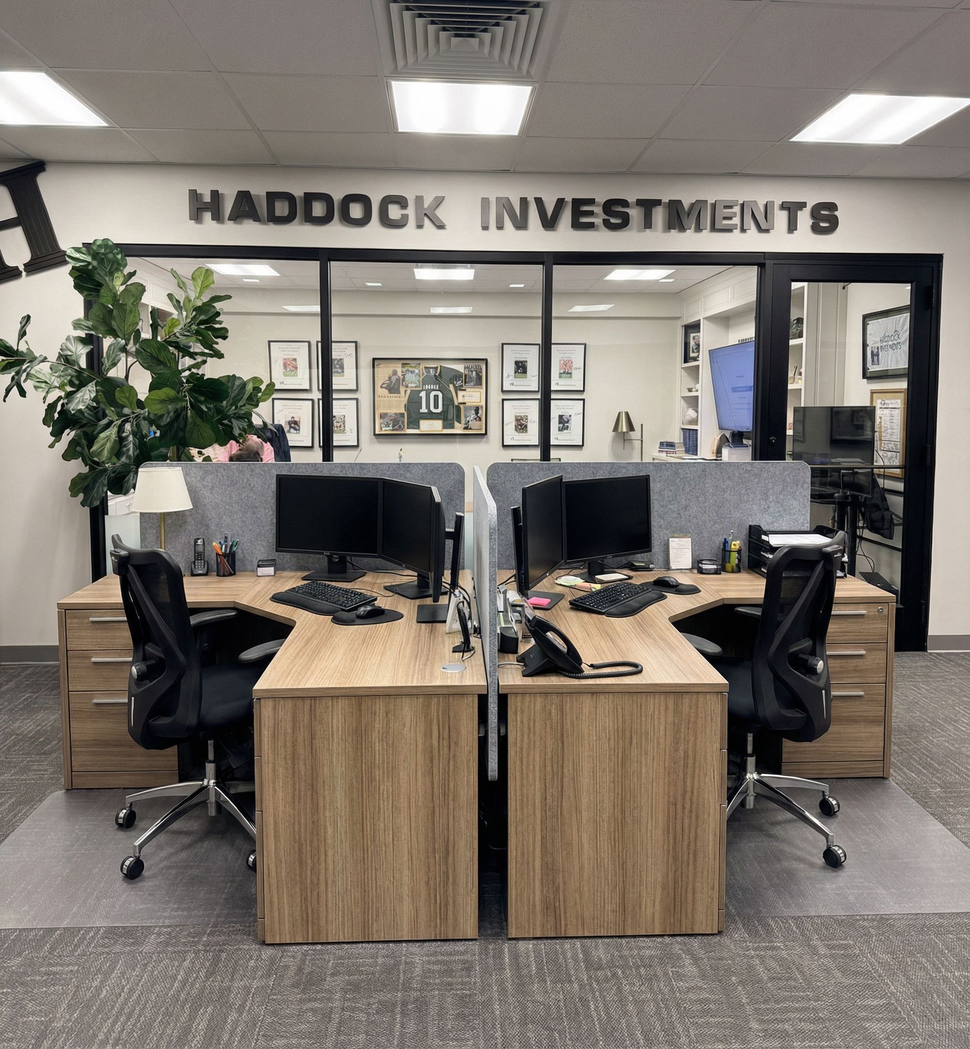 PromptCreate 2 semiprivate modern workstation cubicles in front of the glass, keep exact camera angle