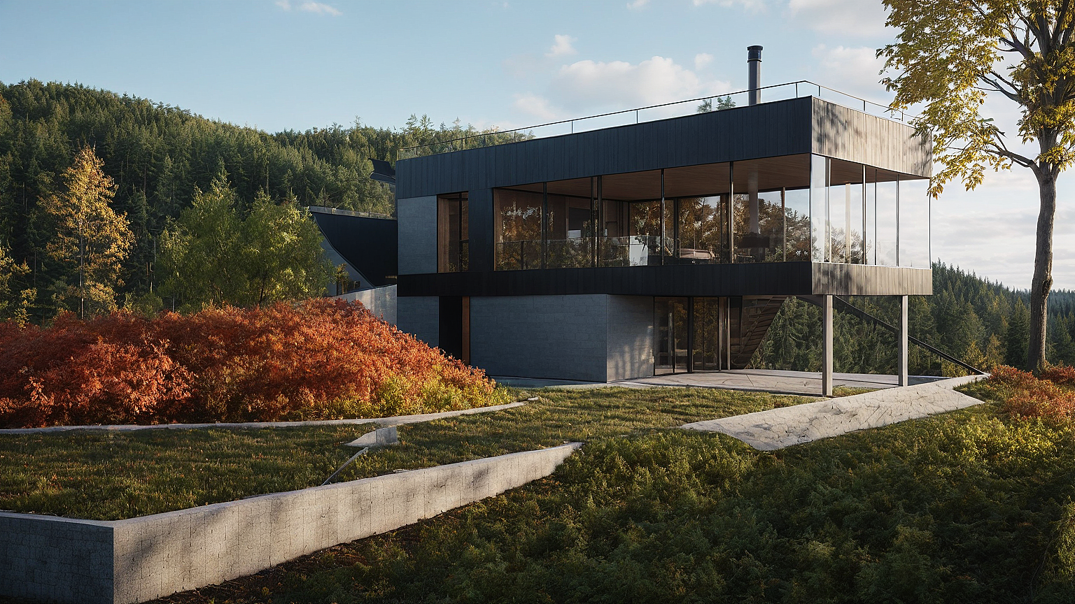 Prompthigh not dense spruce trees in the background on the left, trees cover the sky, maple trees in the background on the right
