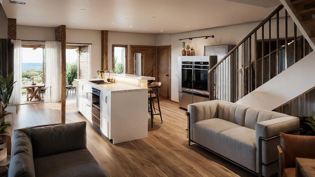 interior with fridge and island