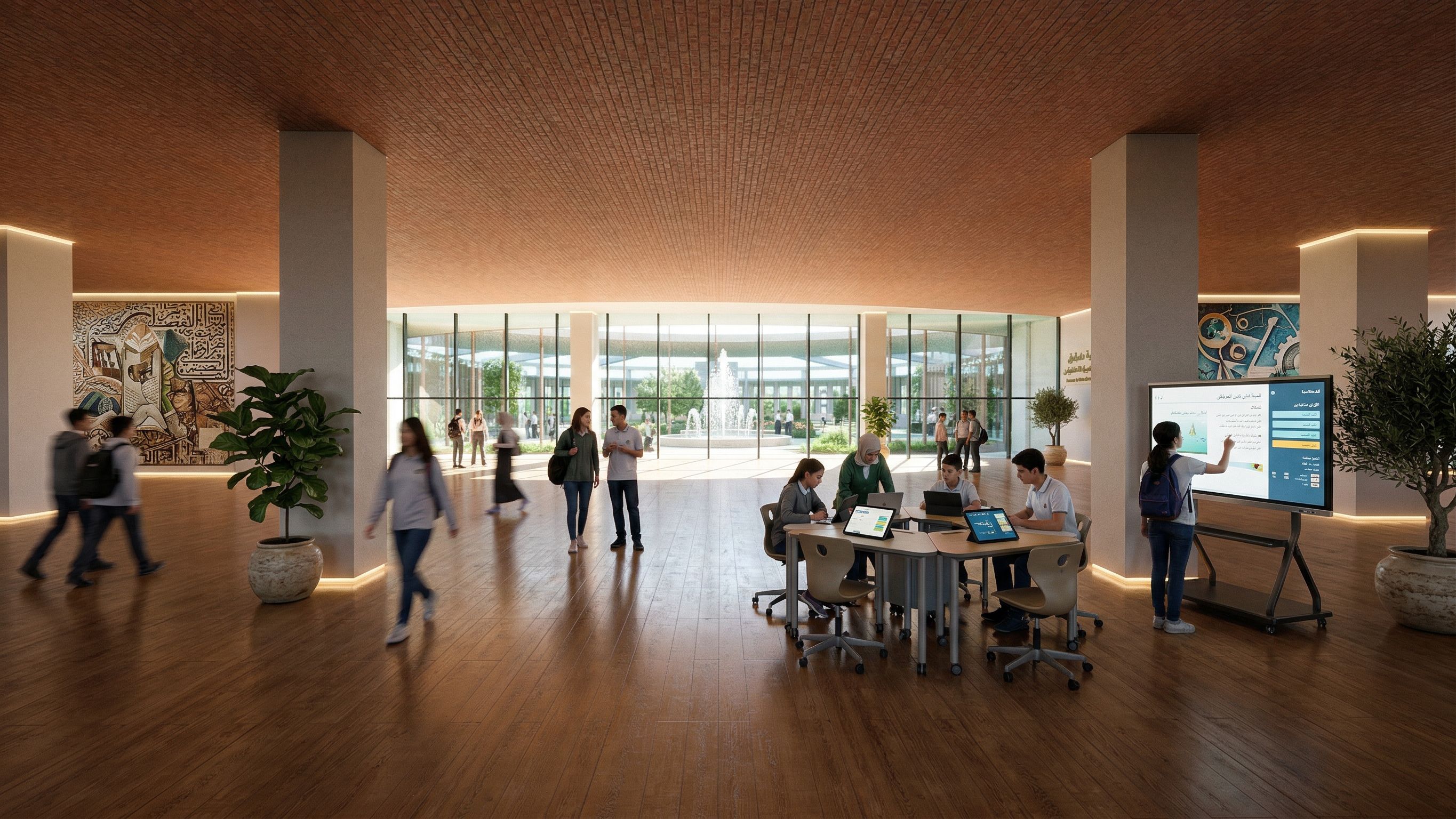 Promptit is the interior 0f a modern Syrian (ARAB) school and it shows the inner interactive school