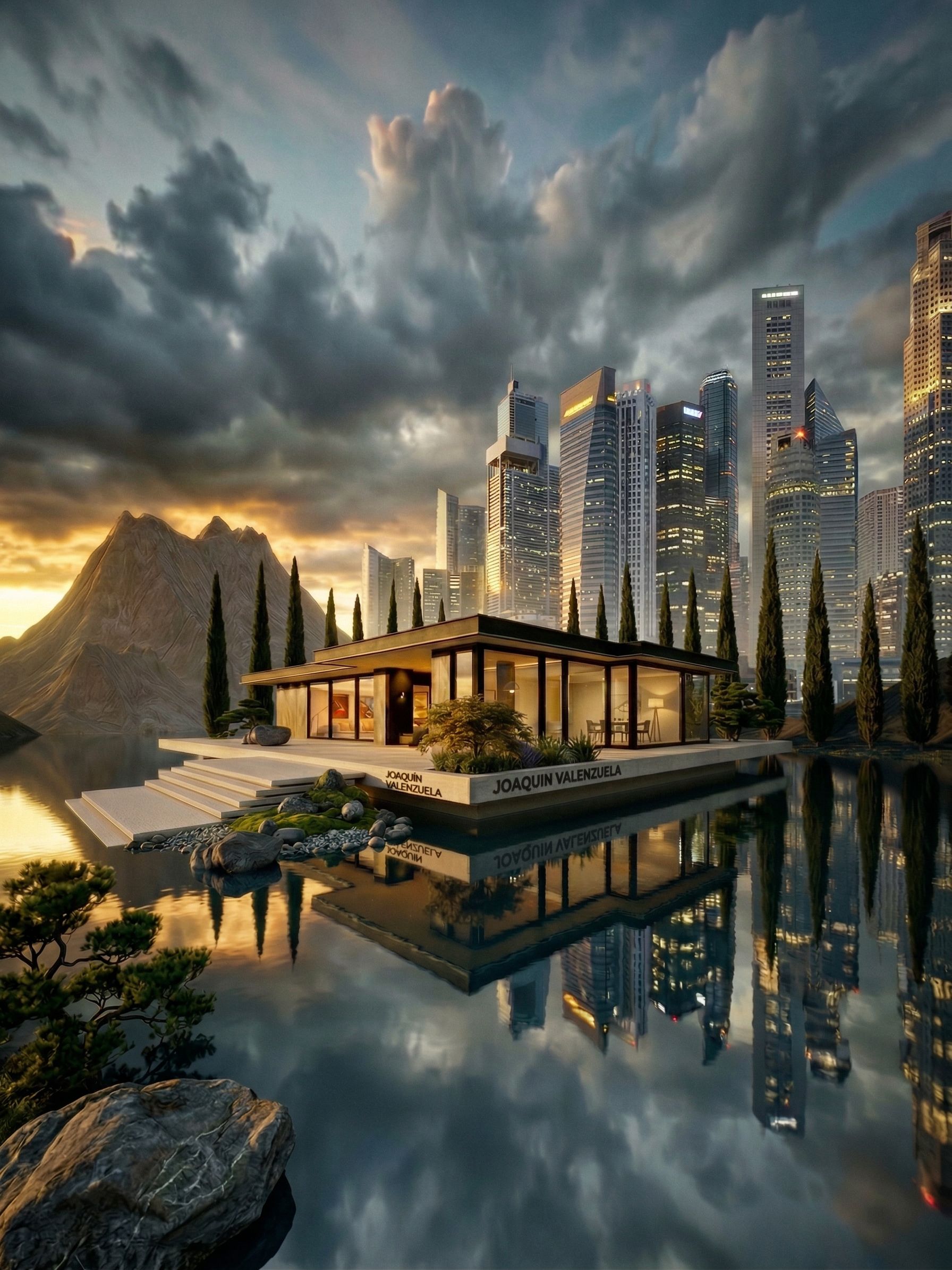 PromptAñade con sutileza vegetación típicamente japonesa. Dale mayor detalle fotorrealista a las piedras que se encuentran en la imagen. añade más realismo a la montaña que se ve detrás añade foto realismo cinematográfico de alta producción a la imagen para conseguir un efecto de total realismo., keep exact camera angle