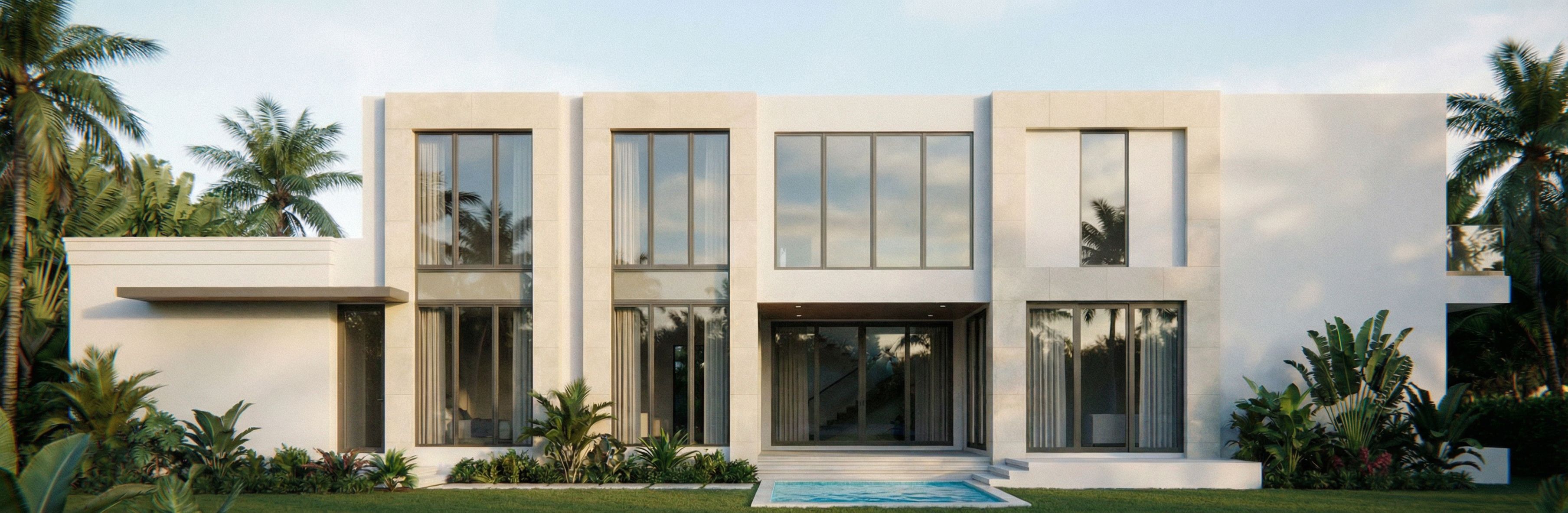 change only what i say. can you add a small pool in the center the building is l shappe and teh cabana and teh wing should be pulled slightly off the elevation and be directly in line with the pool in teh center , keep exact camera angle