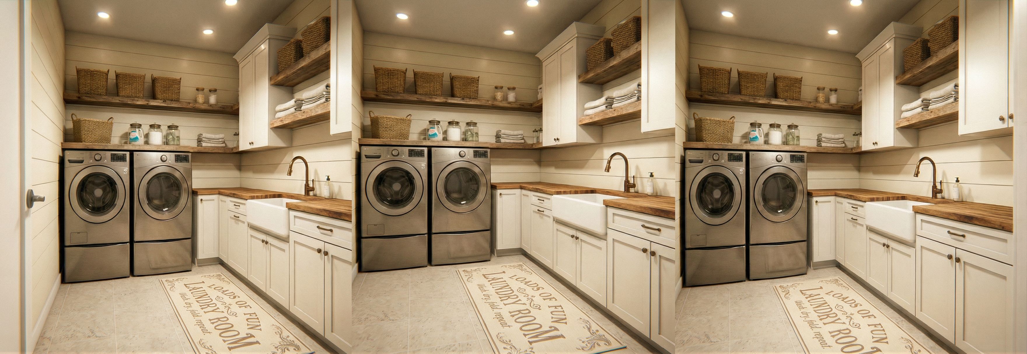 Replace pendant light fixture with ceiling can light fixture, replace rug with rug per Reference Image 1, change the color of the new rug to light brown to match the room, keep the rest exactly the same, keep exact camera angle