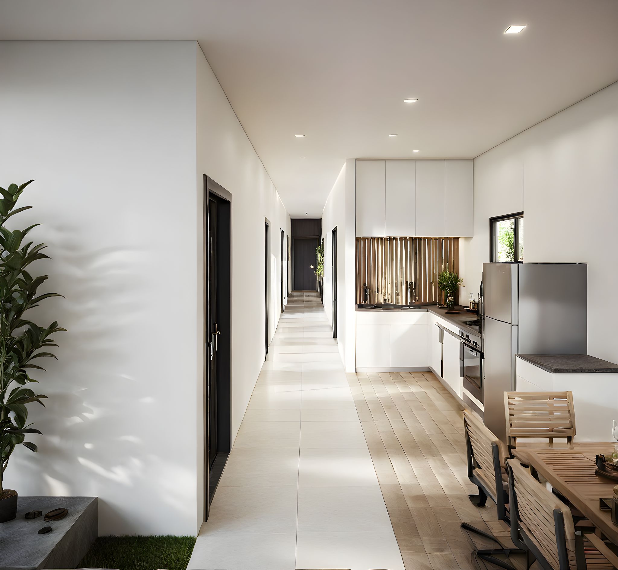 Promptrender of a residential building. white-painted façades. low income house with good material