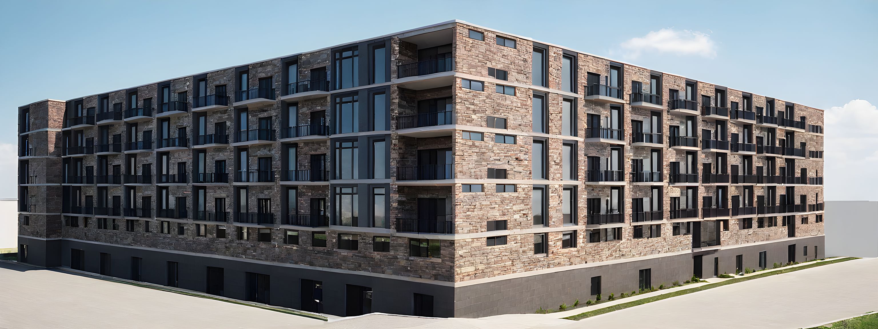 PromptTHIS IS A EXTERIOR OF AN APARTMENT BUILDING I WANT A STONE/BRICK MATERIAL