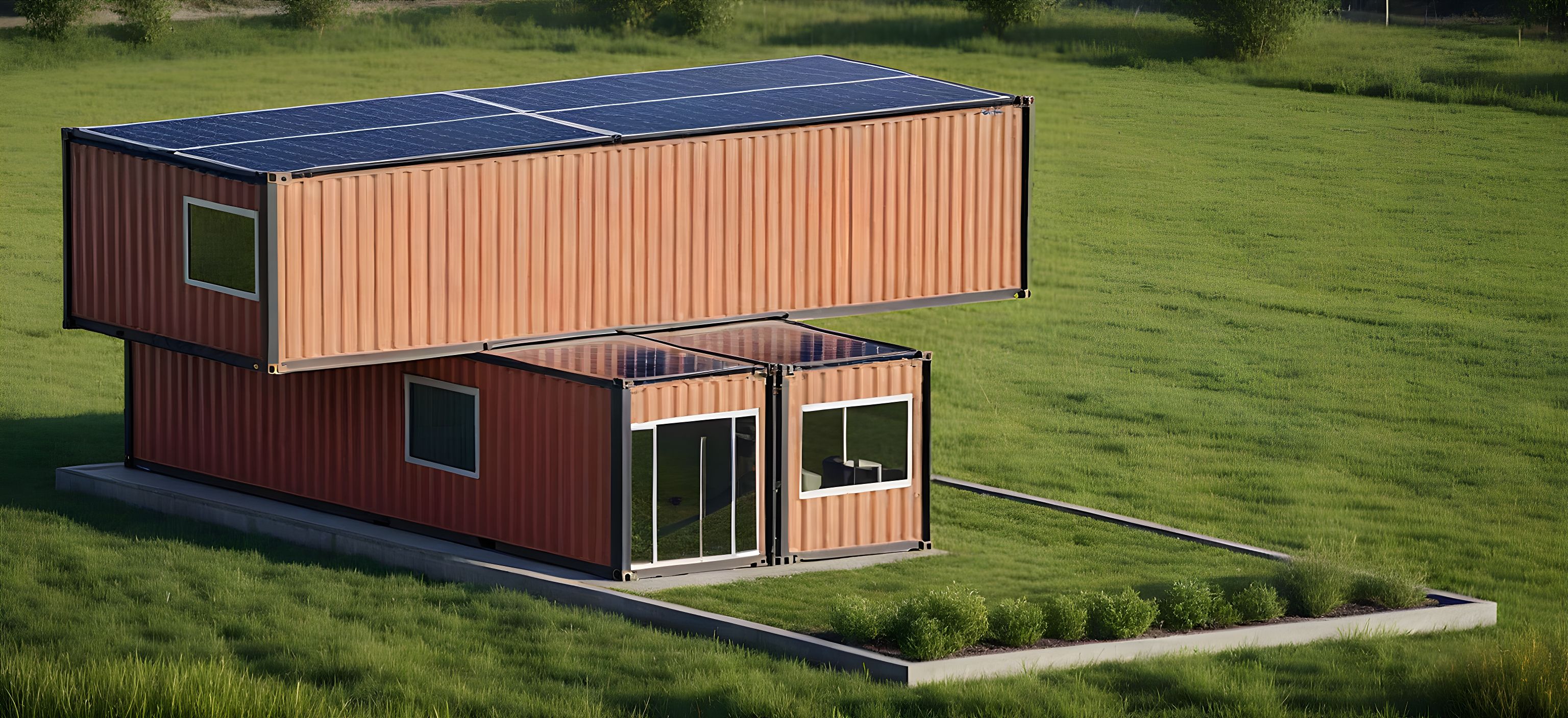 PromptShipping container, with solar panels, grass