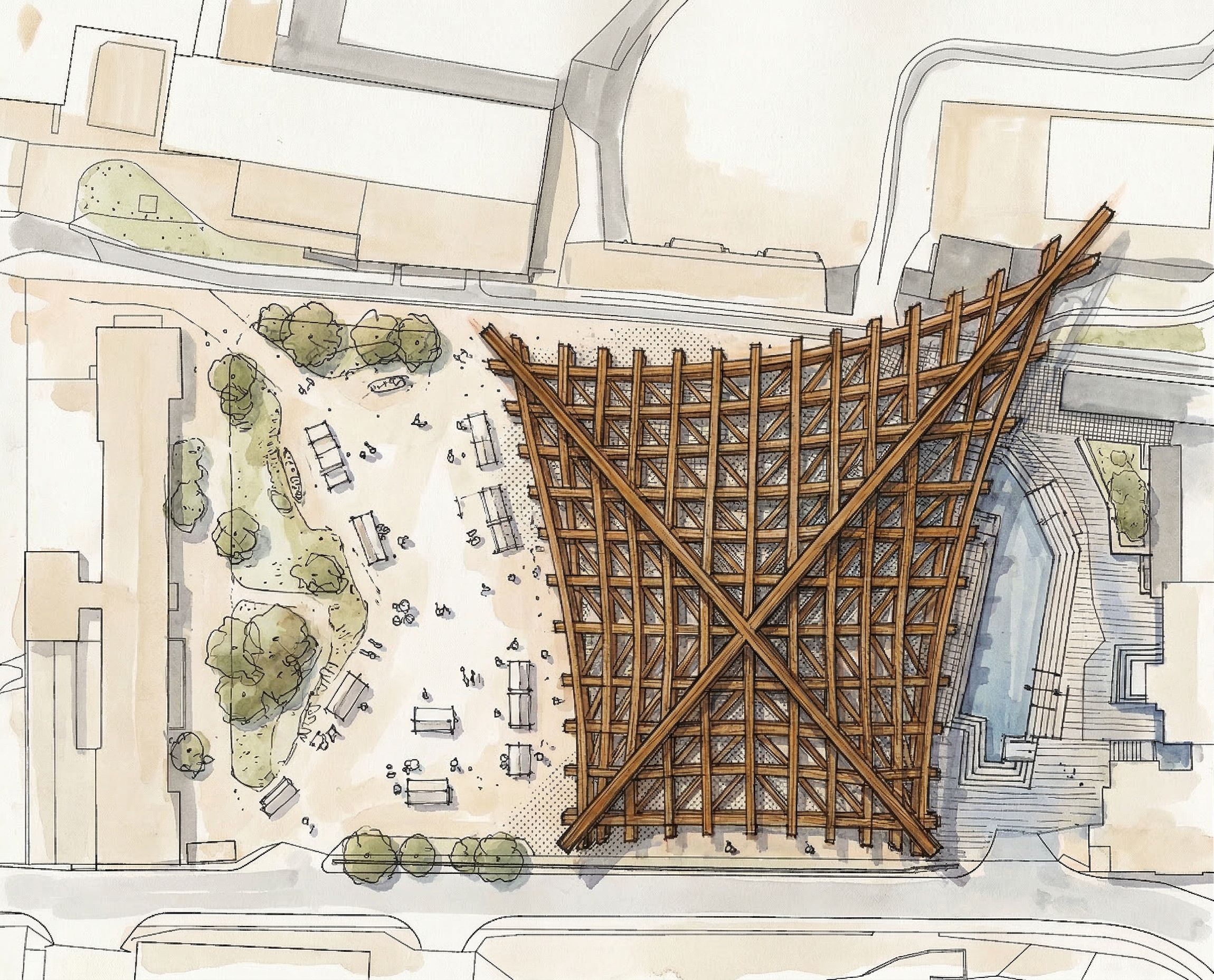 make it seems like a drawing architectural drawing... so no text my roof is from tiber wood , keep exact camera angle