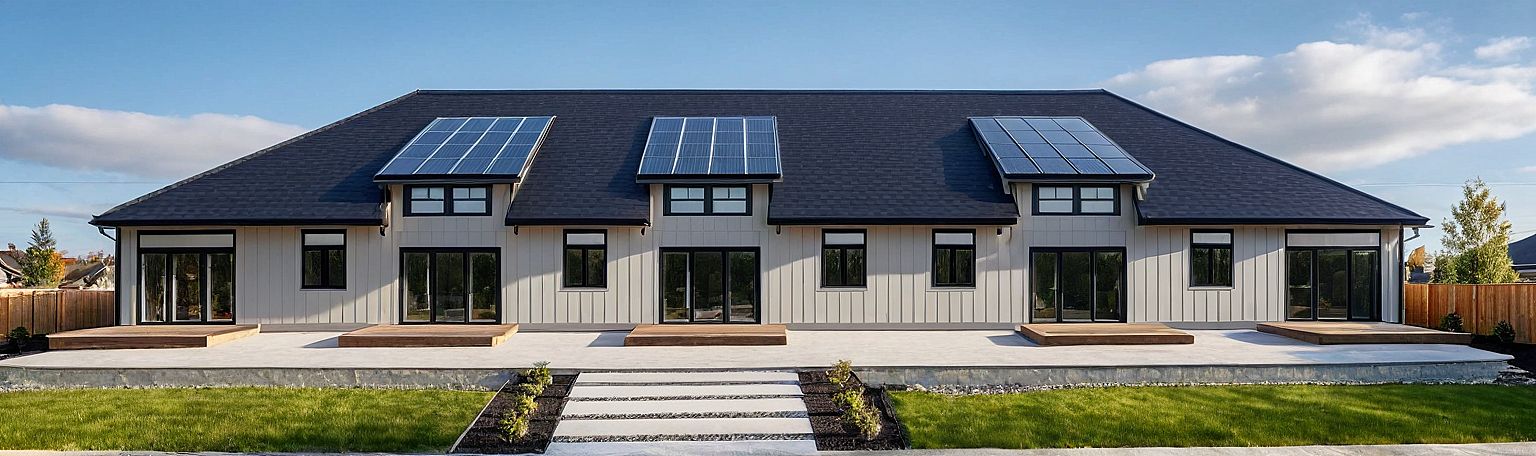 Promptbungalow with shed dormer, steel roof accents, back yard view with decks
