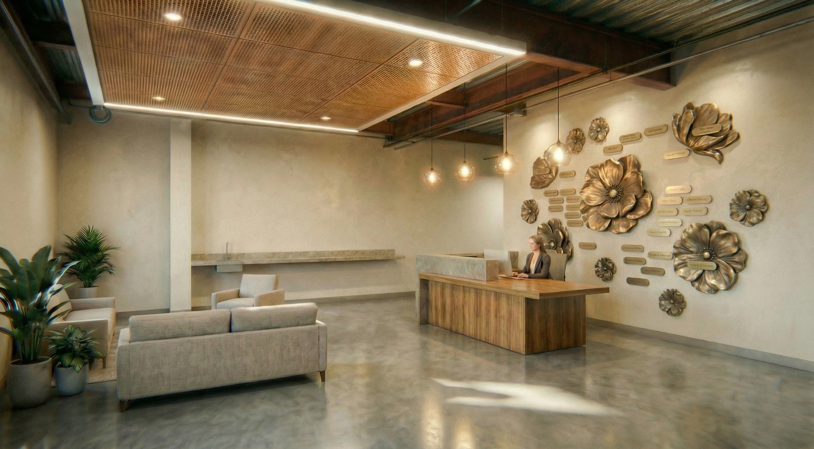 Promptmore minimal and calm 3d flower donor wall maybe?, keep exact camera angle