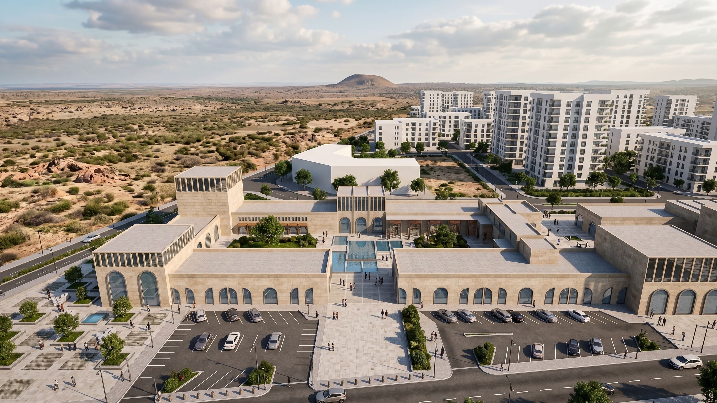 • add realistic people walking, gathering, and enjoying the outdoor courtyards