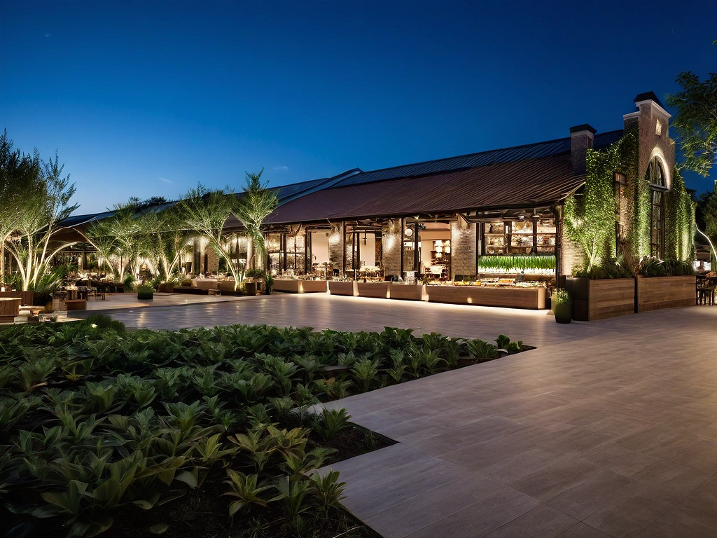 Promptfood hall, amazing garden, same construction materials, same facade, amazing terrace