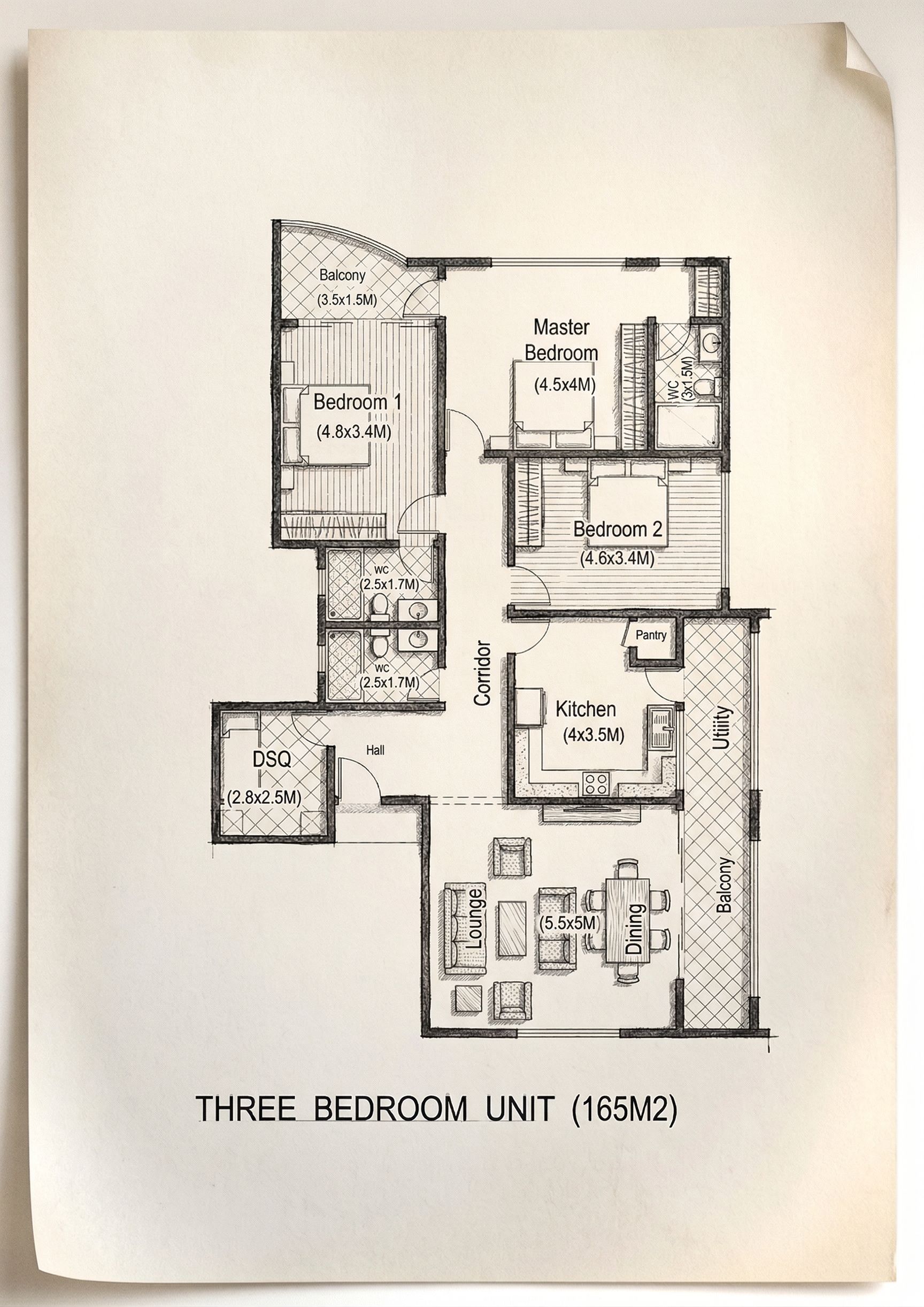PromptMAKE A BLACK AND WHITE SKETCH WITH CLEAR PARTITIONS AND FURNITURE CLEARLY INDICATED WITH HAIRLINES GREY COLOUR. MAINATIN ORIGINAL ANNOTATIONS., keep exact camera angle