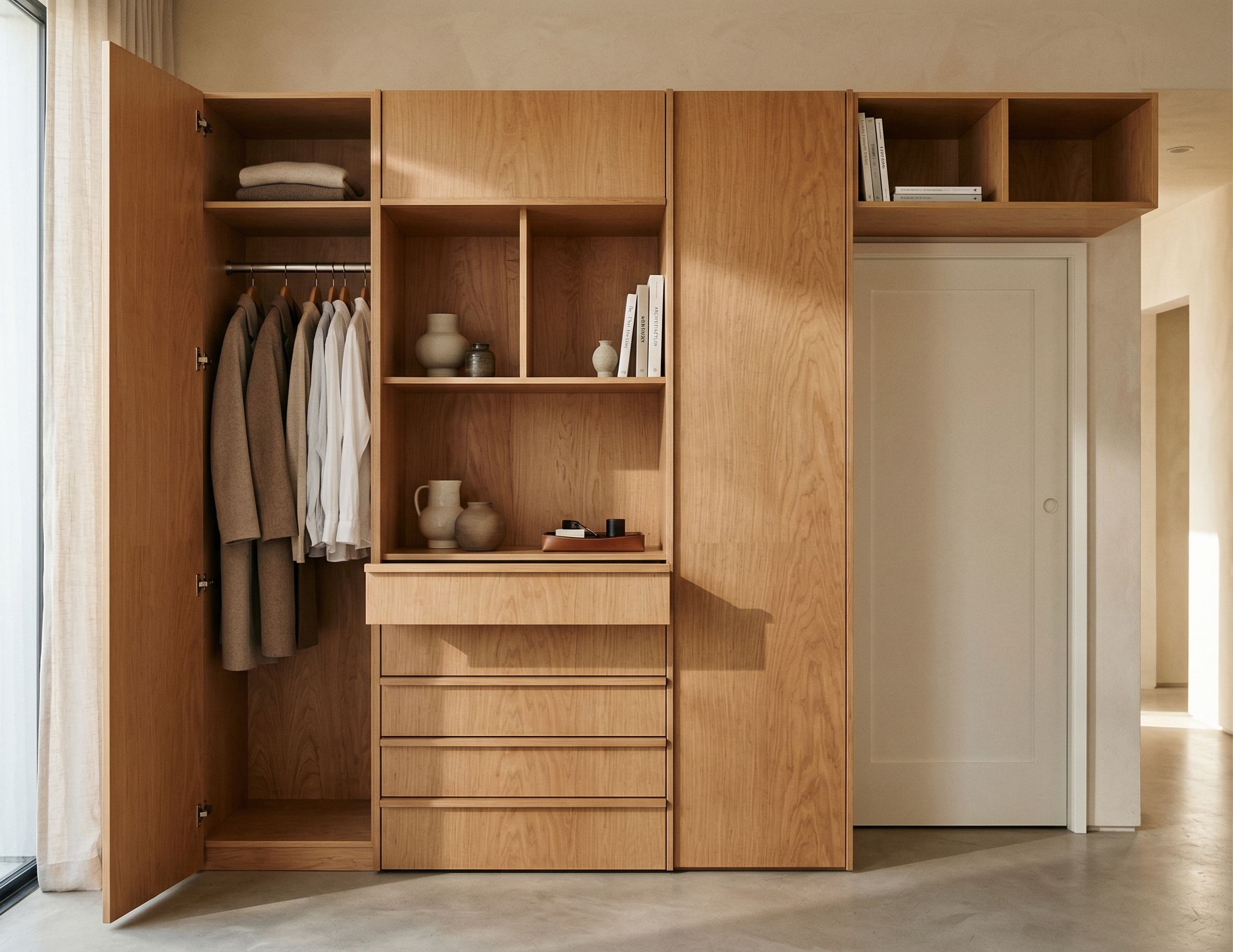 Promptremove the brass handle on the left wardrobe door, keep exact camera angle