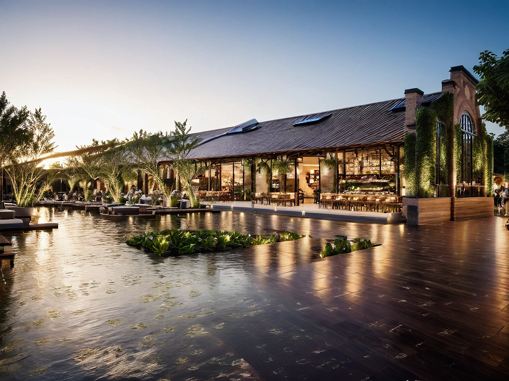 Promptfood hall, amazing garden, same construction materials, same facade, amazing terrace