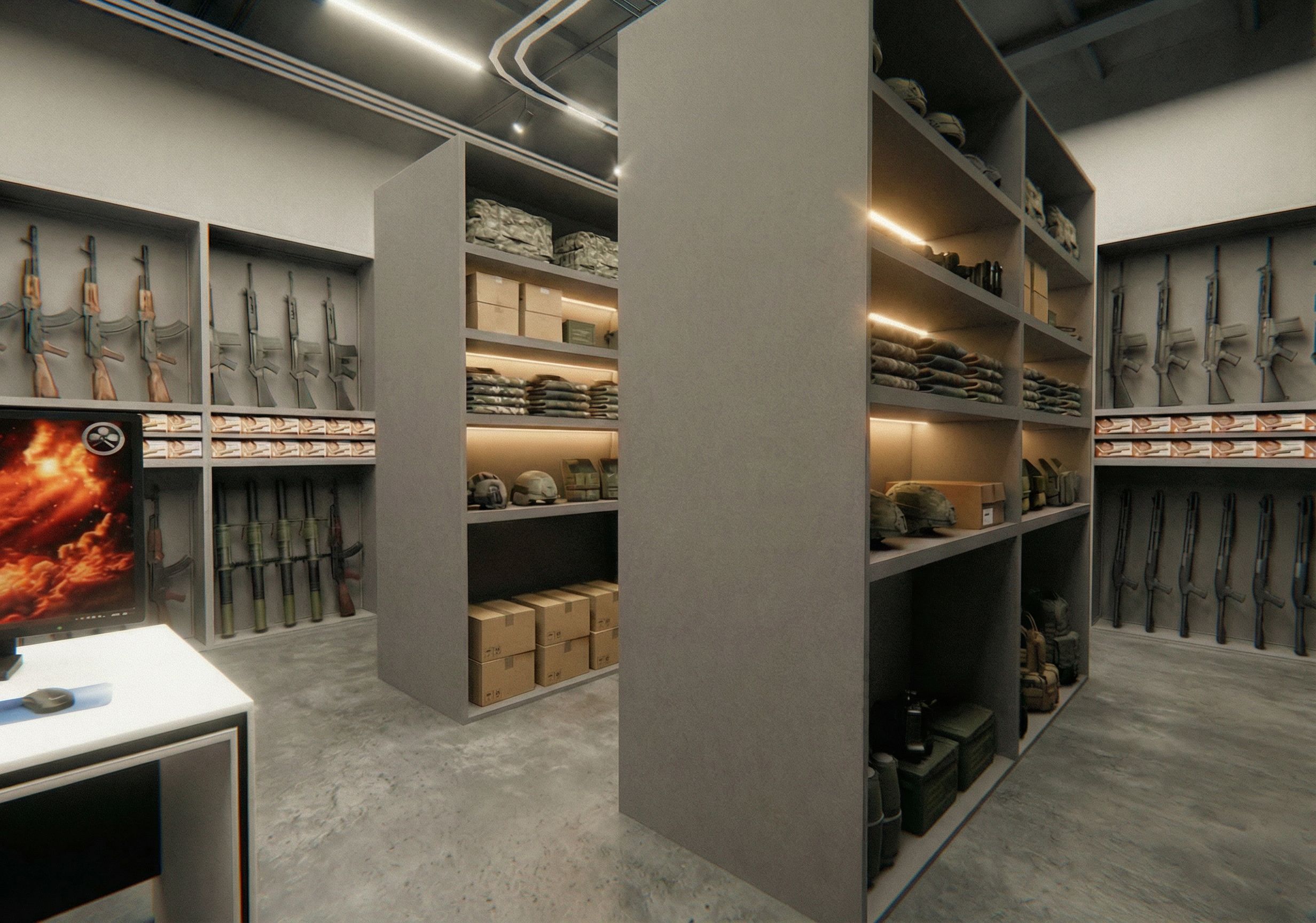 Promptporfavor añade luz indirecta al entrepaño mas alto y al de las cajas , keep exact camera angle