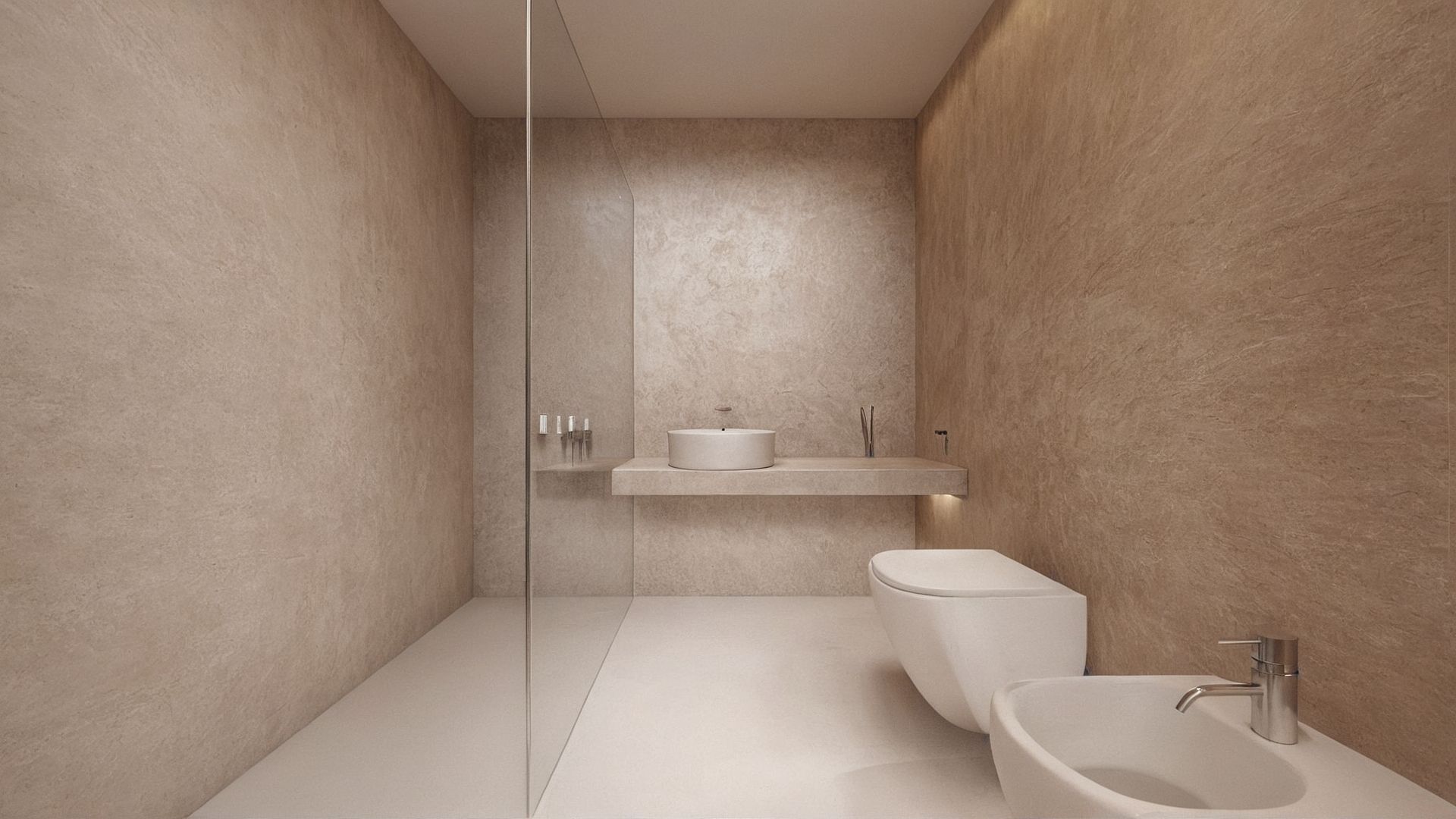 è un bagno con a sinistra una doccia filo pavimento