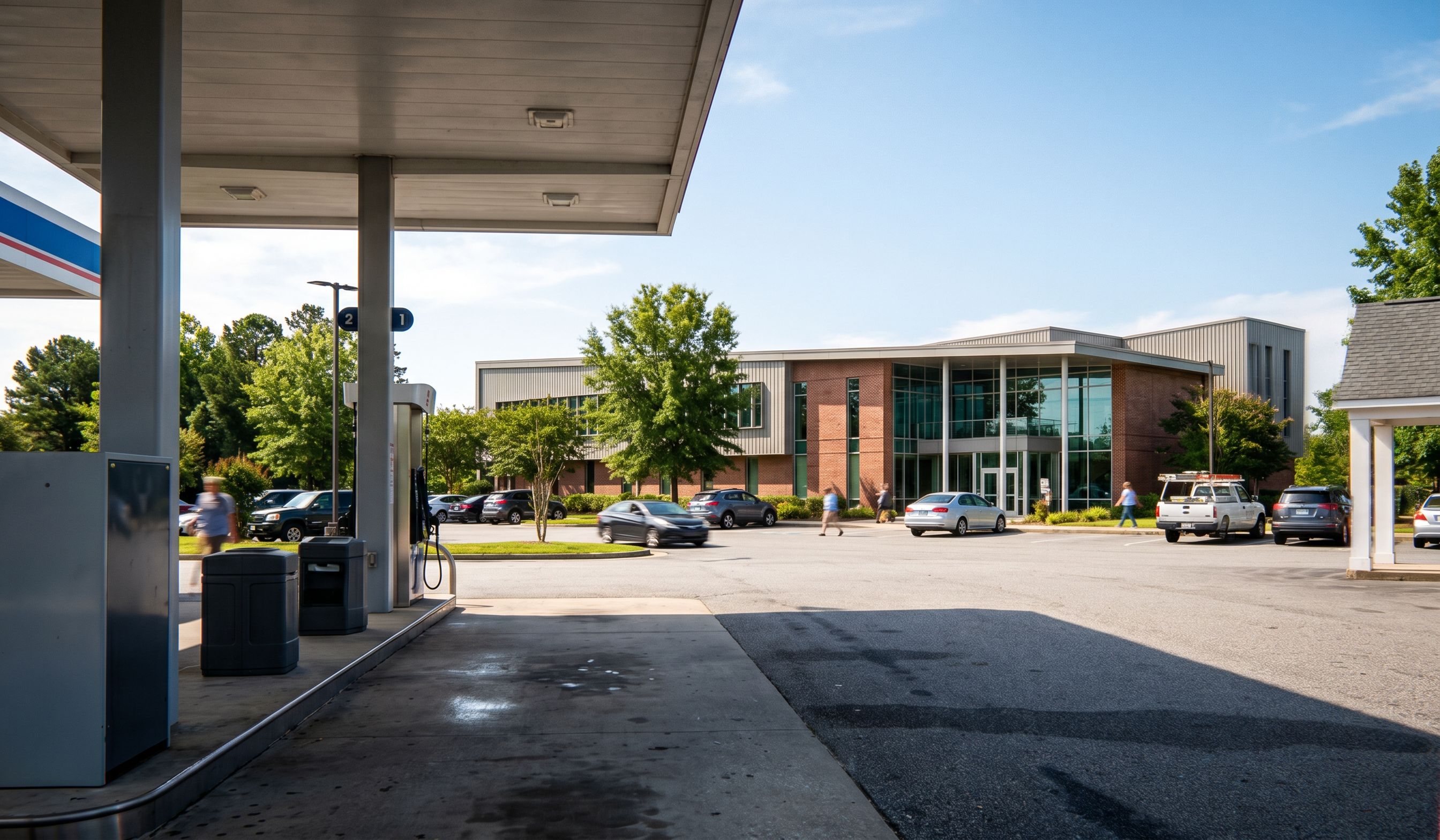 PromptRender this image. The building in the background is our project. It is a stormwater operations control command center in Virginia Beach. Match the view from the base image. , keep exact camera angle