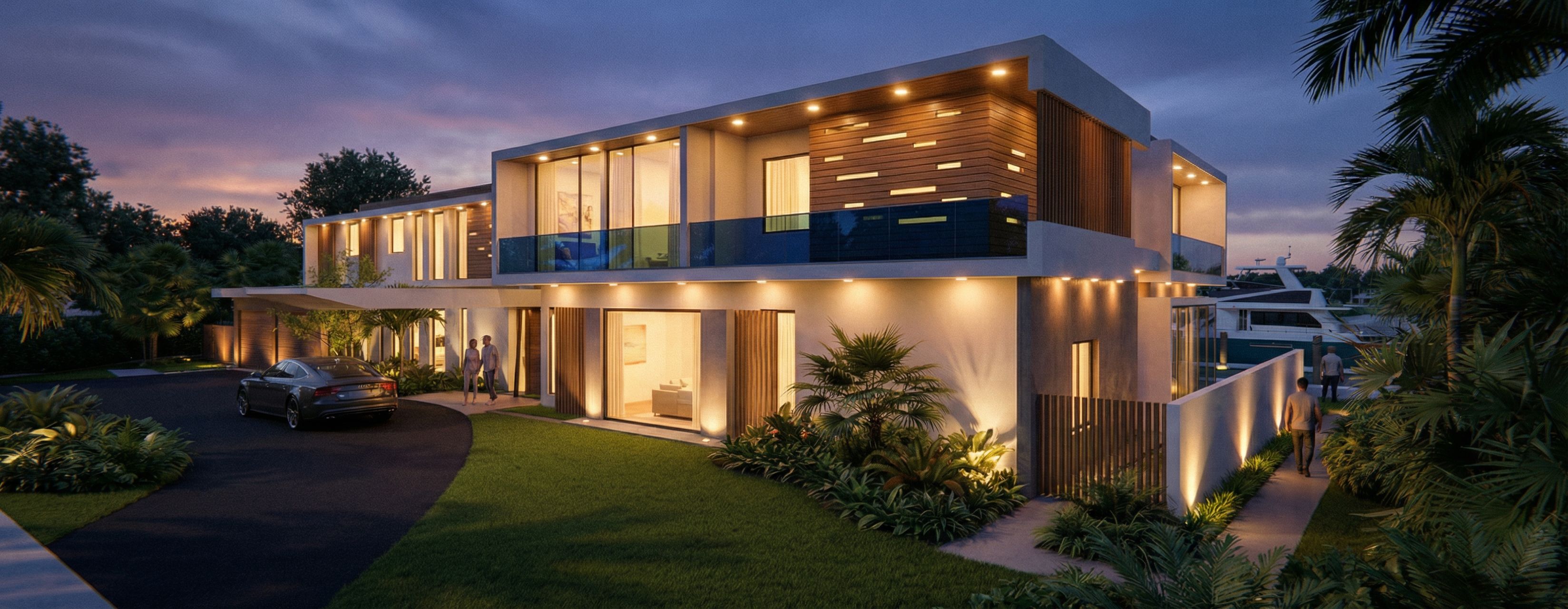 CAMBIAR PARA DL ATARDECER. COLOCAR LUZ TENUE EN EL INTERIOR DE LA CASA. LUZ AMBIENTAL EN LOS JARDINES CON REFLECTORES ILUMINANADO LA CASA. CONSERVAR EL PUNTO DE VISTA EXACTO. , keep exact camera angle