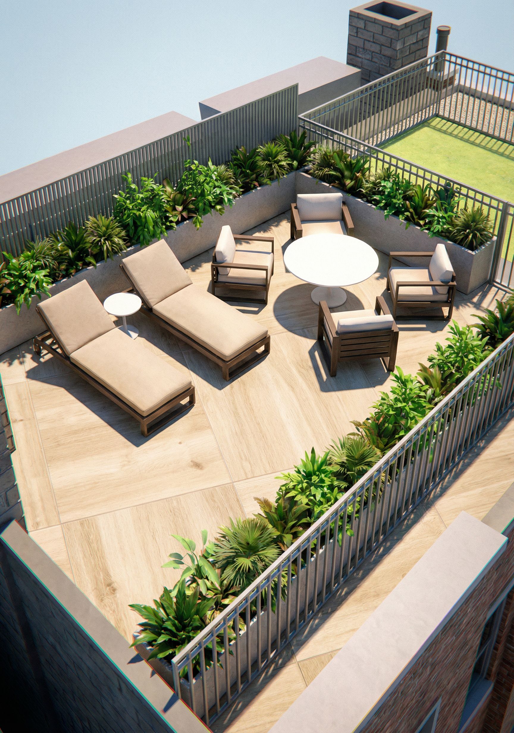 Promptrender roof terrace tiles with tiles from reference image, keep exact camera angle