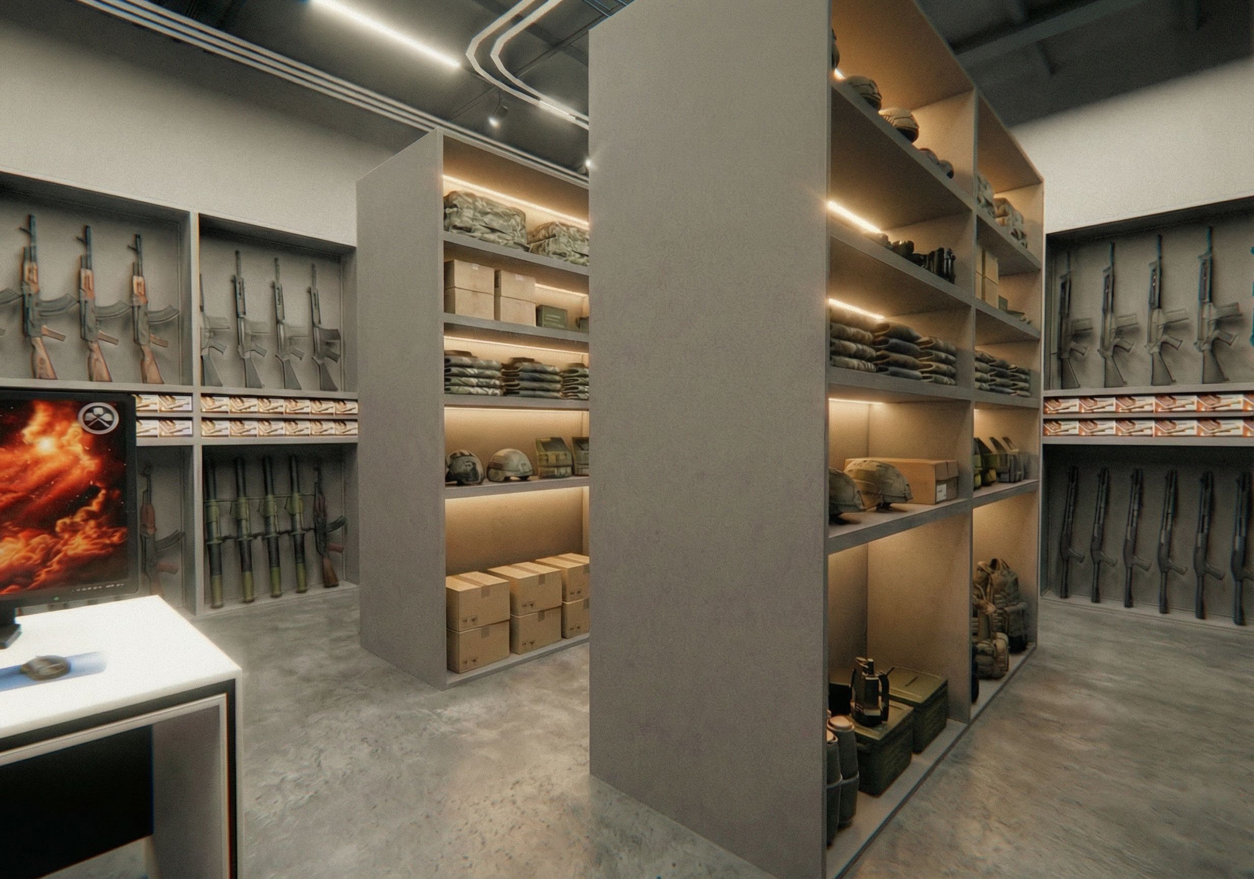 porfavor añade luz indirecta al la division mas alta del primer mueble la iluminacion se debe ver igual que el segundo , keep exact camera angle