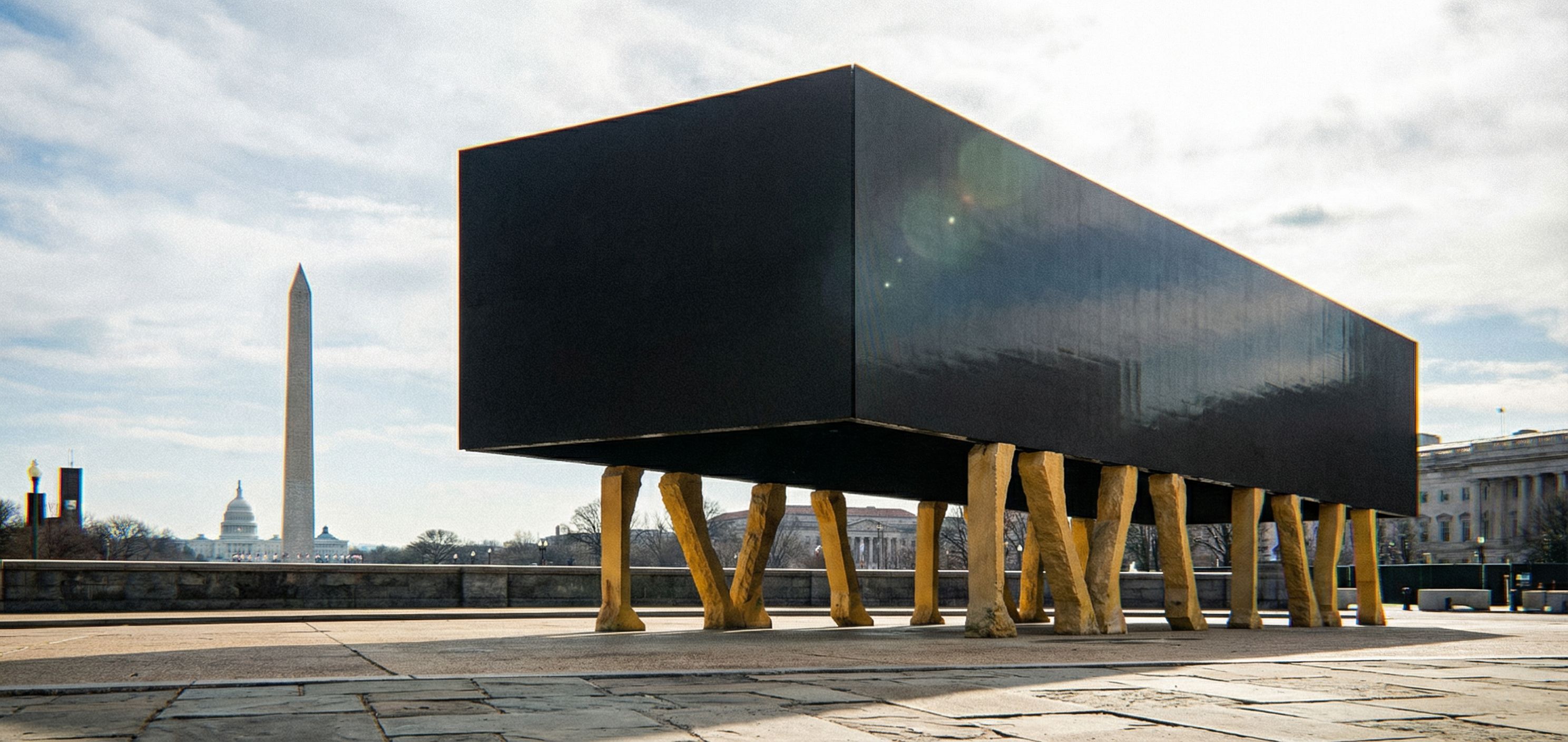 Promptkeep exact camera angle , BLACK IS SCREEN , YELLOW IS Riyadh stone , Washington DC , keep exact camera angle