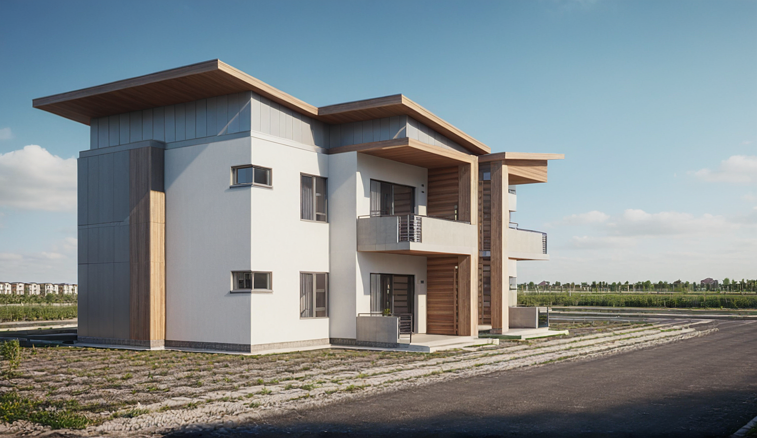 PromptA mass housing development complex, including people and vehicles depicting life, and the far ground is a convenience centre?