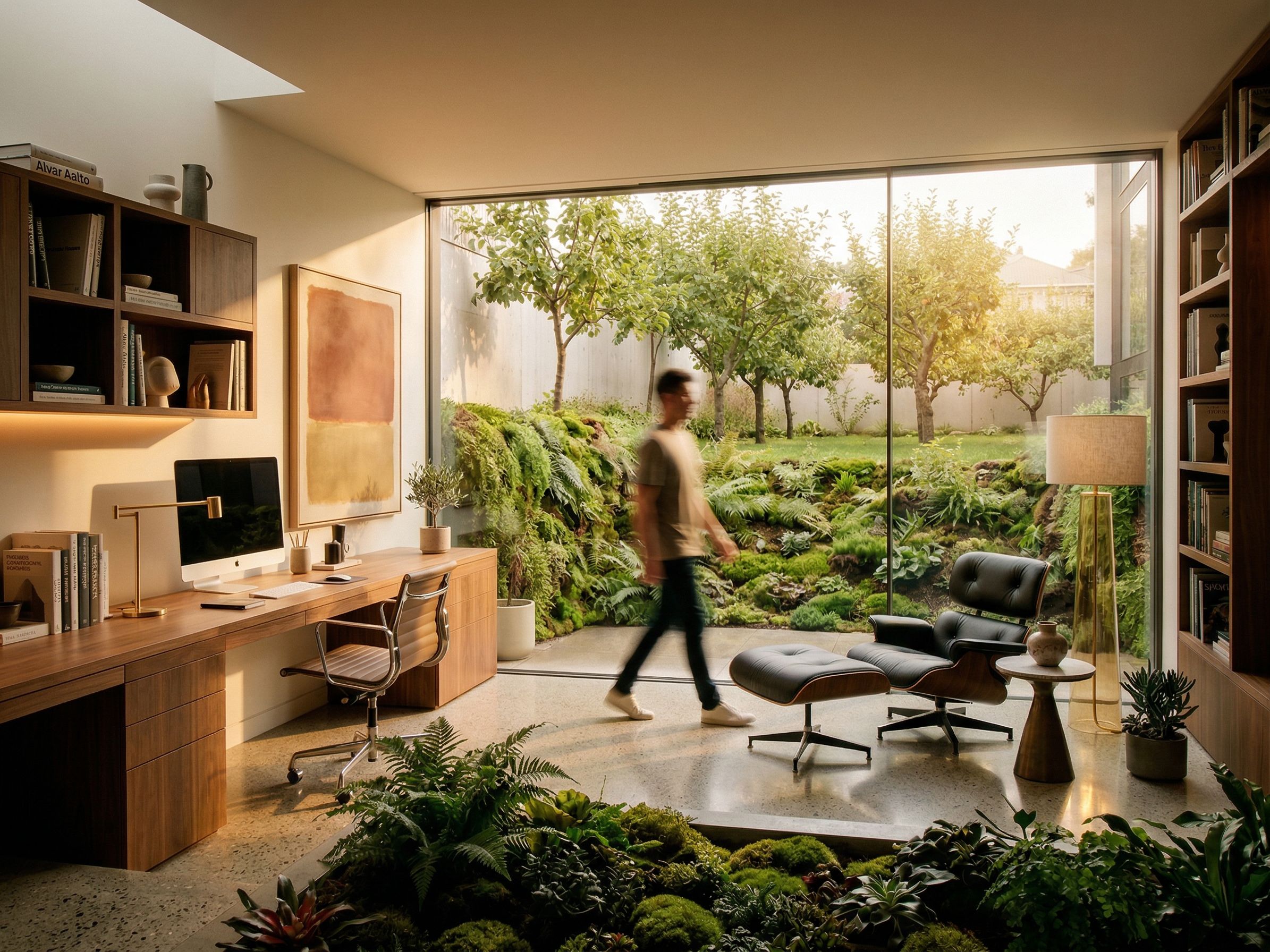 Promptuse previous image but eliminate stair on left and use painted wall finish at left side, keep exact camera angle