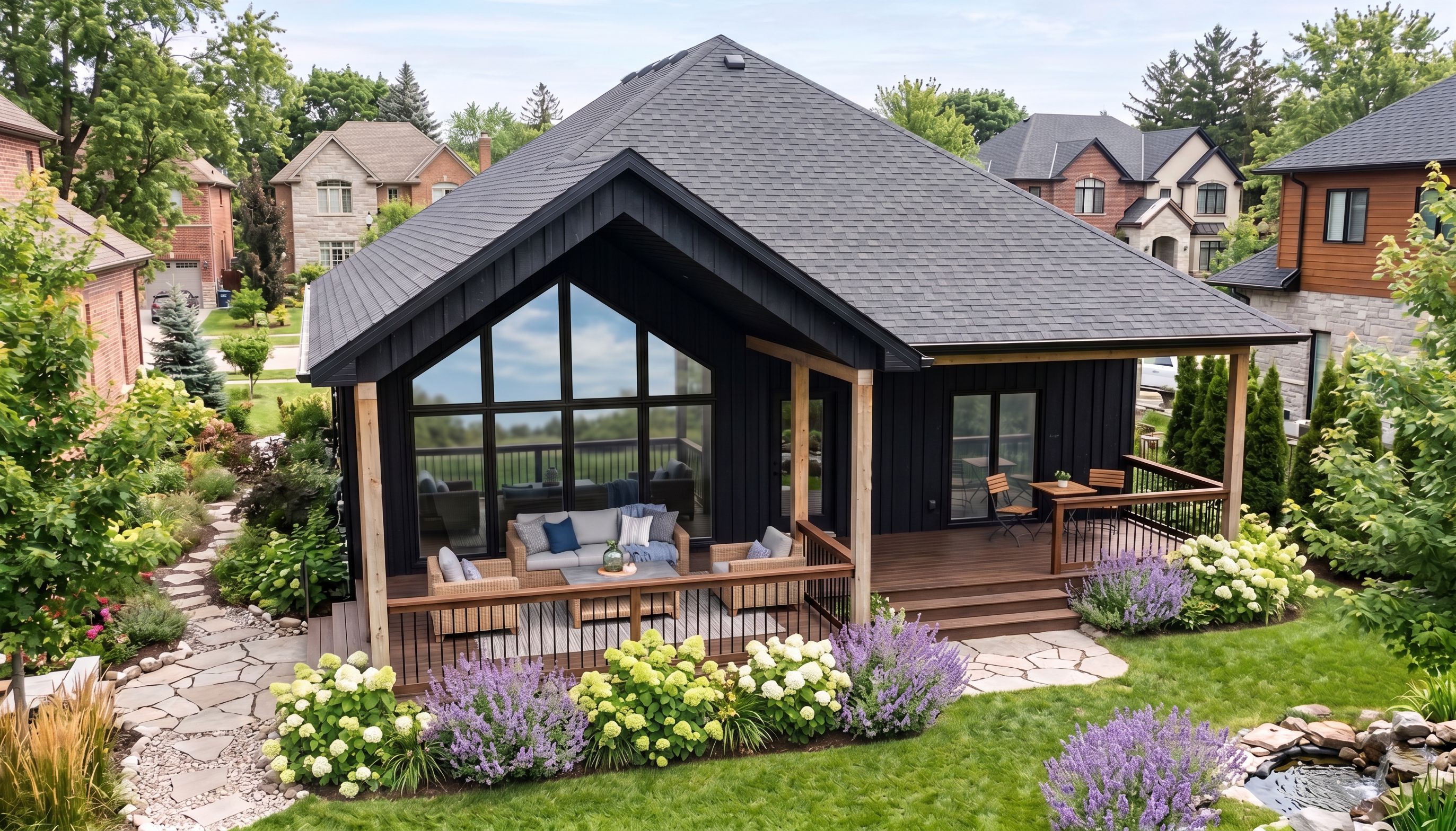 PromptShow some single story nice subdivison homes clean and simple bungalows, keep exact camera angle