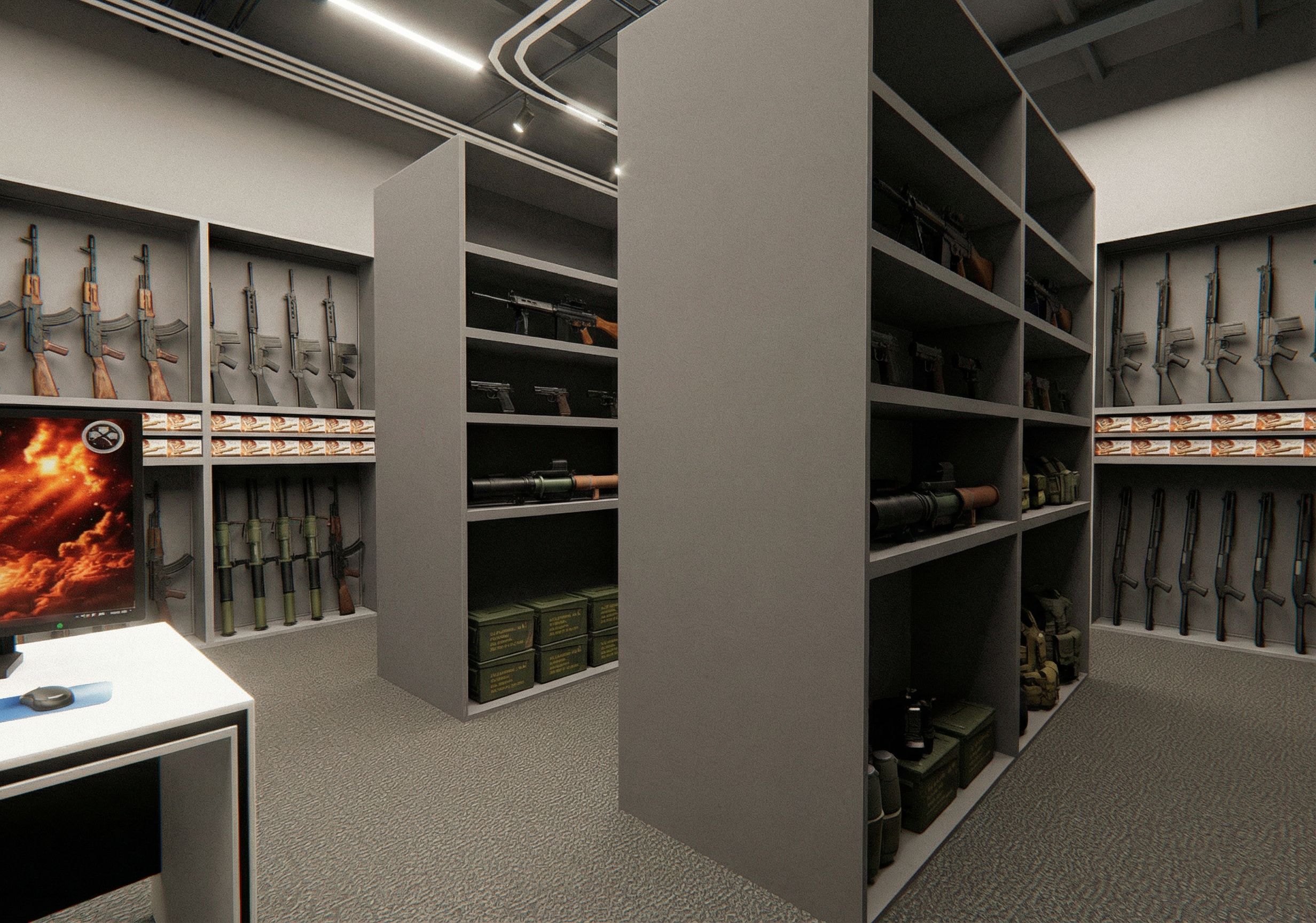 porfavor coloca en los muebles que hay en la pared las armas de la guardia nacional bolivariana venezuela debes mantener el diseño e iluminacion de la imagen que no tiene las armas , keep exact camera angle
