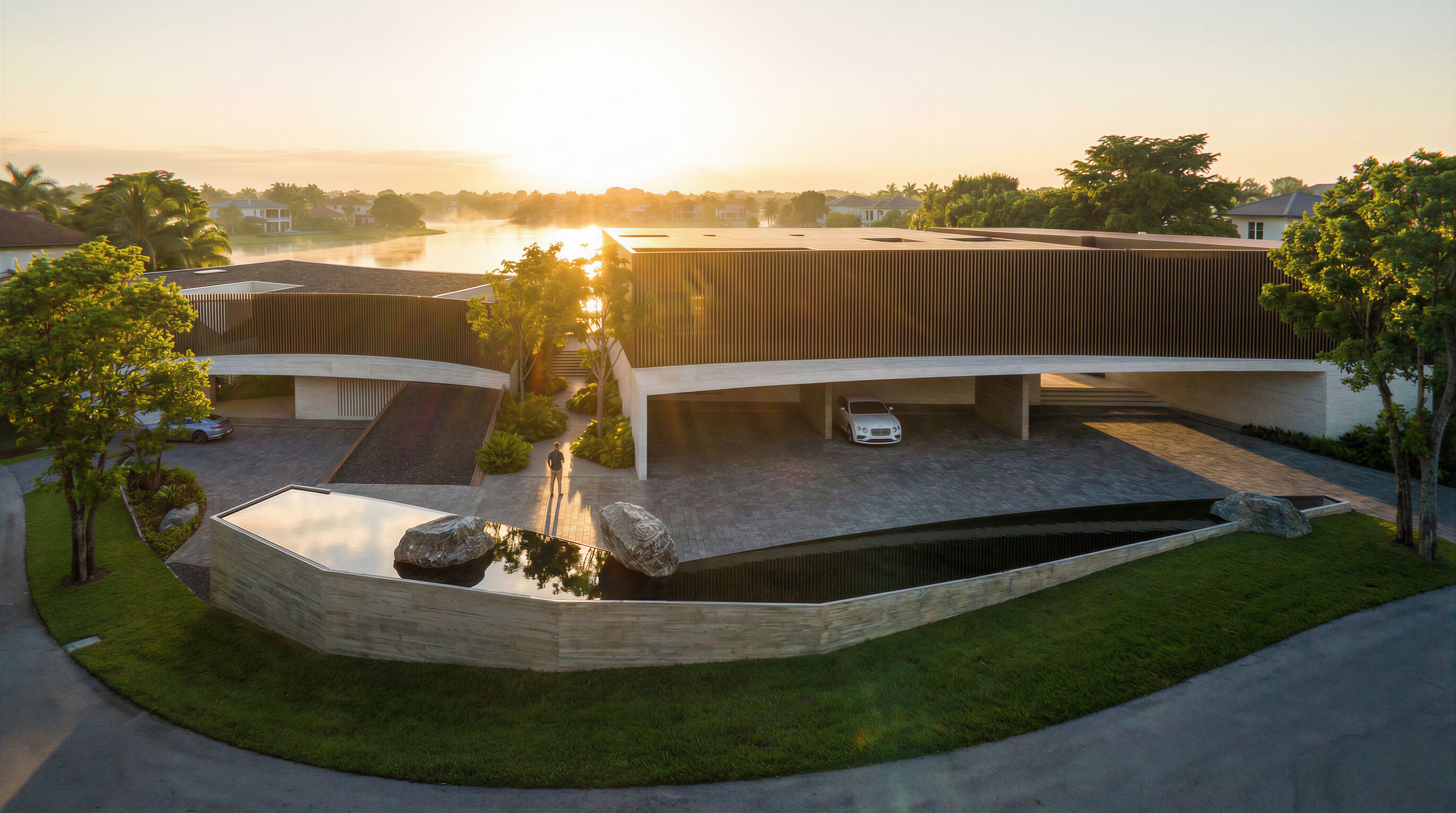 Just change the light direction, the sunrise from the lake. Do not change angle and design., keep exact camera angle
