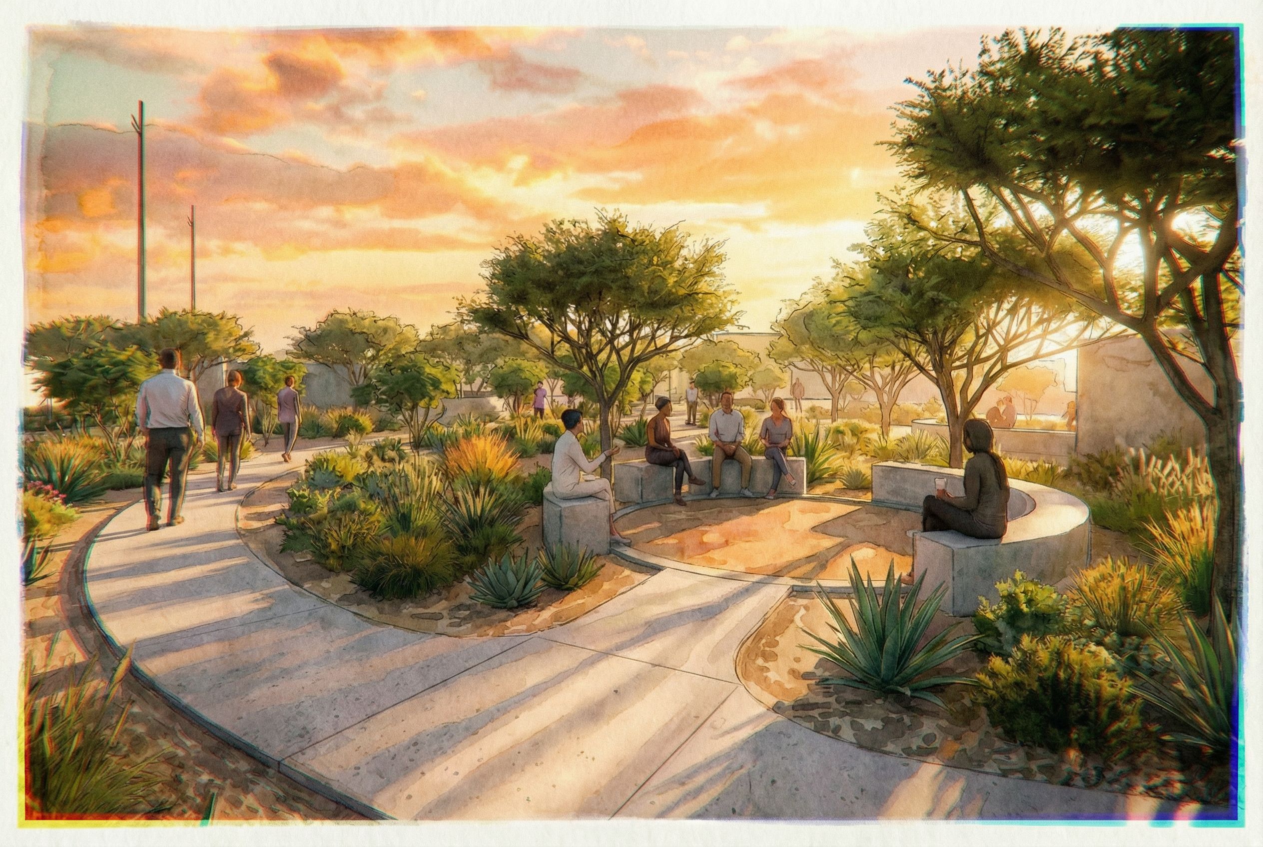 PromptOverall make the image more sketchy and watercolor, less specific plant types , keep exact camera angle