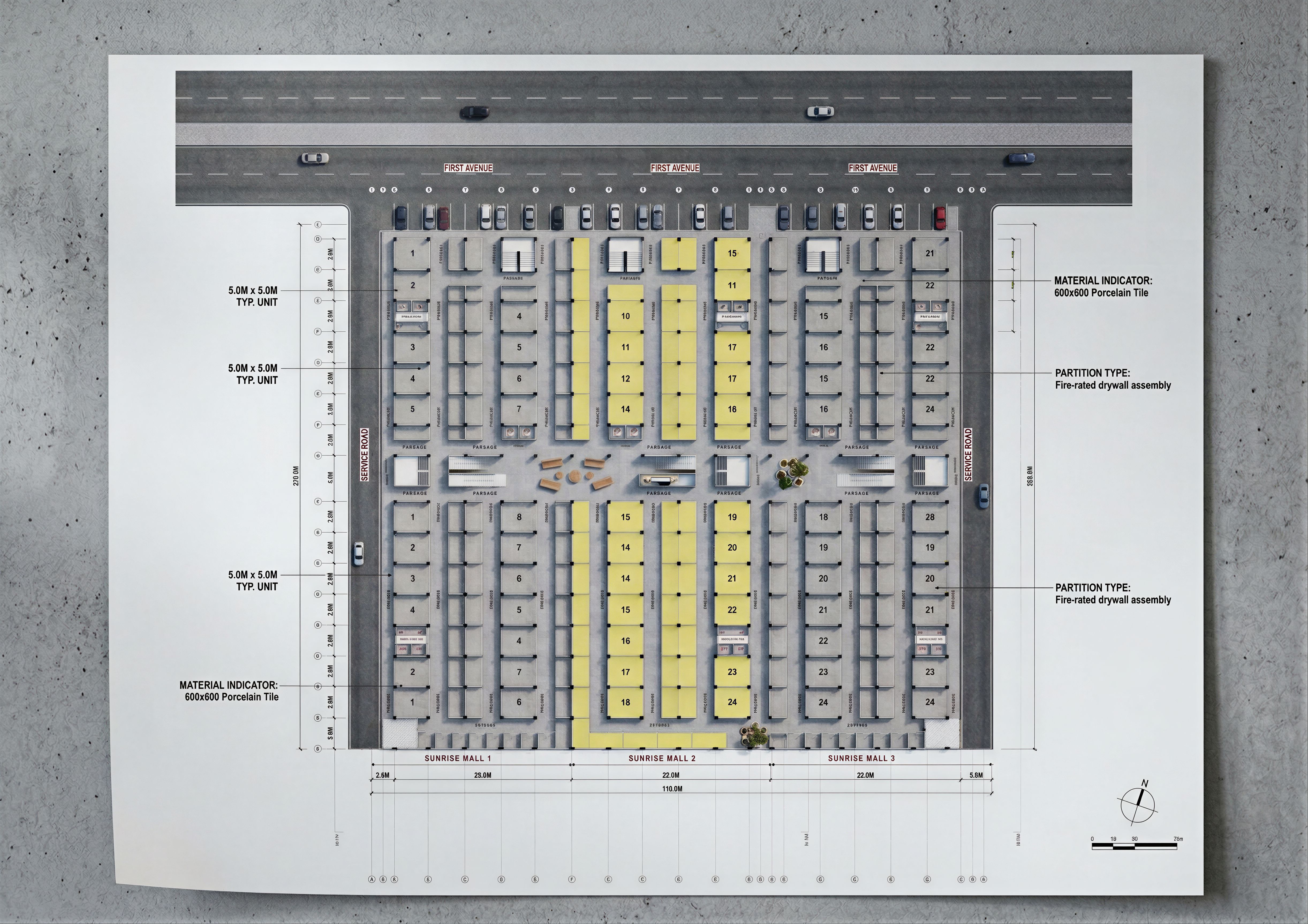 EnhancedPromptLAYOUT OF A SHOPPING MALL WITH SHOPS. CLEARLY INDICATE THE PARTITIONS, ACCESS ROADS, STAIRS AND ESCALATORS AND ELEVATORS. MAINTAIN ORIGINAL LAYOUT DESIGN AND ANNOTATIONS. USE CERAMIC TILES ON THE FLOOR.MAKE IMAGE REALISTIC HIGH RESOLUTION 8K. MAINTAIN ORIGINAL LAYOUT WITH PARTITIONS. MAKE LAYOUT REALISTIC AND HIGH RESOLUTION. MAINATIN ORIGINAL ANNOTATIONS. MAINTAIN ORIGINAL UPLOADED LAYOUT. PL;EASE MAINTAIN ORIGINAL LAYOUT ,ANNOTATIONS AND PARTITIONS., keep exact camera angle