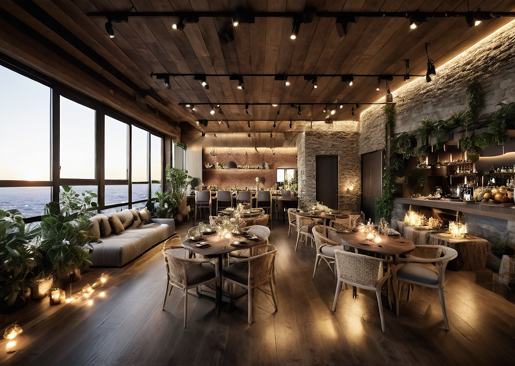 Prompttransform it into a party area, creating a cozy, modern and contemporary environment, with beautiful sunlight