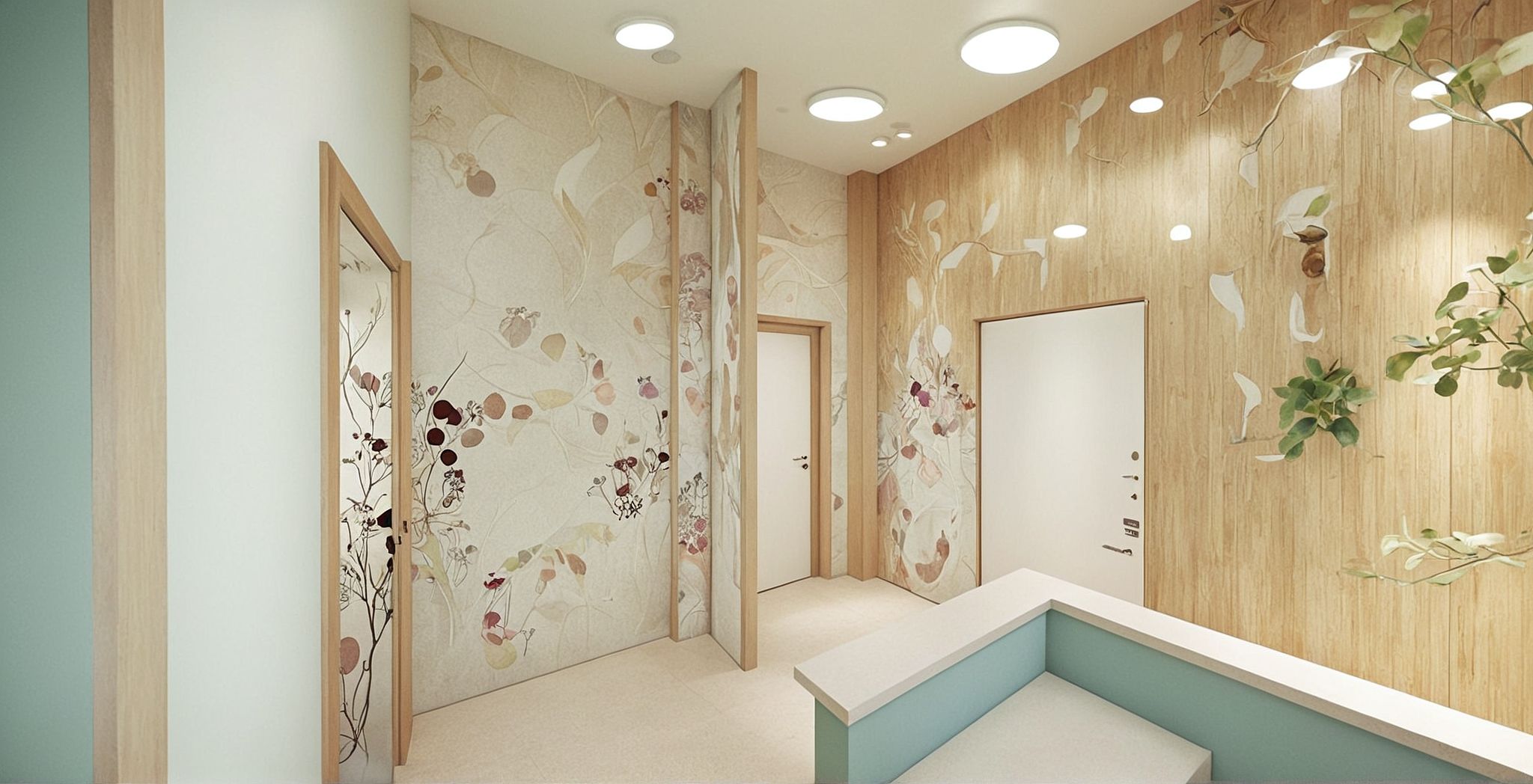 PromptPhoto of an interior space featuring minimalist design elements with clean lines and an open layout. Emphasize smooth wall textures, simple doors, and subtle partitions that define areas. The lighting is soft and even, suggesting daylight streaming through unseen windows. Capture the scene from a wide-angle perspective, enhancing the sense of openness and depth, with a focus on the interplay of light and shadow across surfaces.