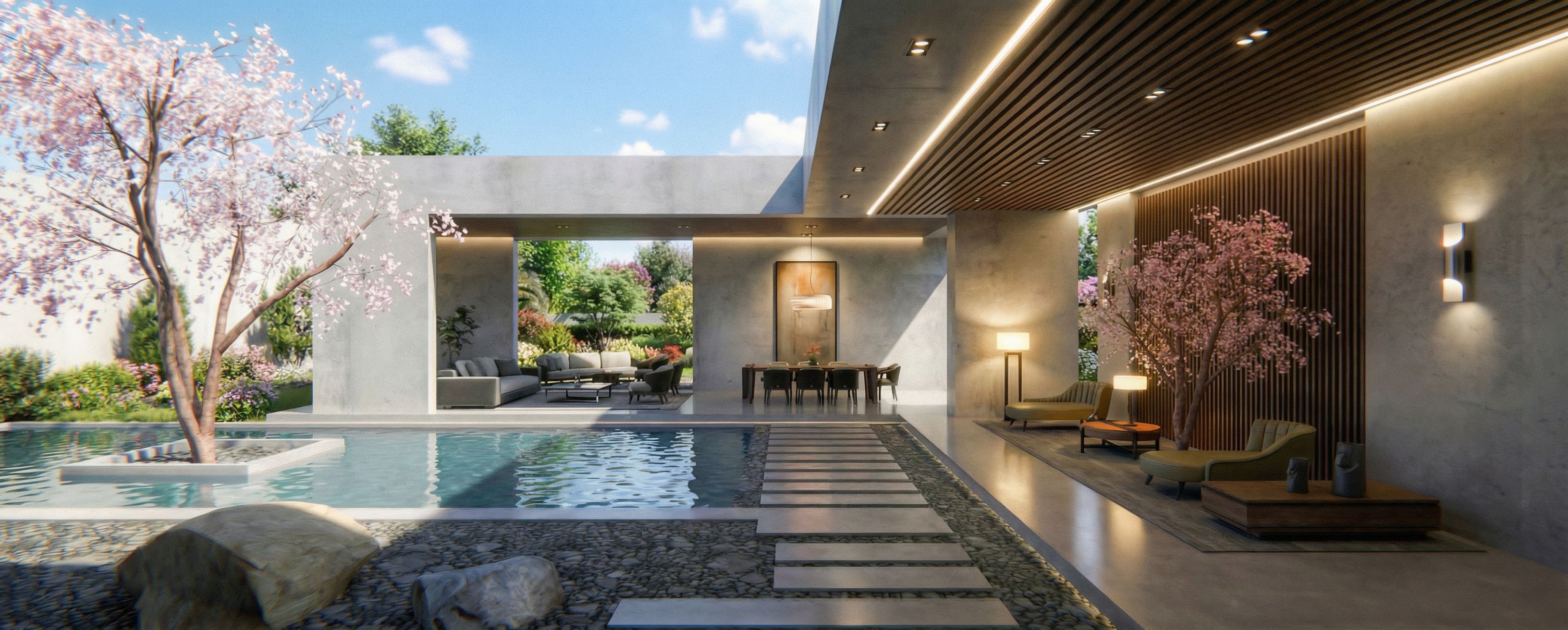 colocar muebles de sala modernos a la izquierda del comedor. adicionar otra lampara encima de la mesa de la izquierda de la imagen , keep exact camera angle