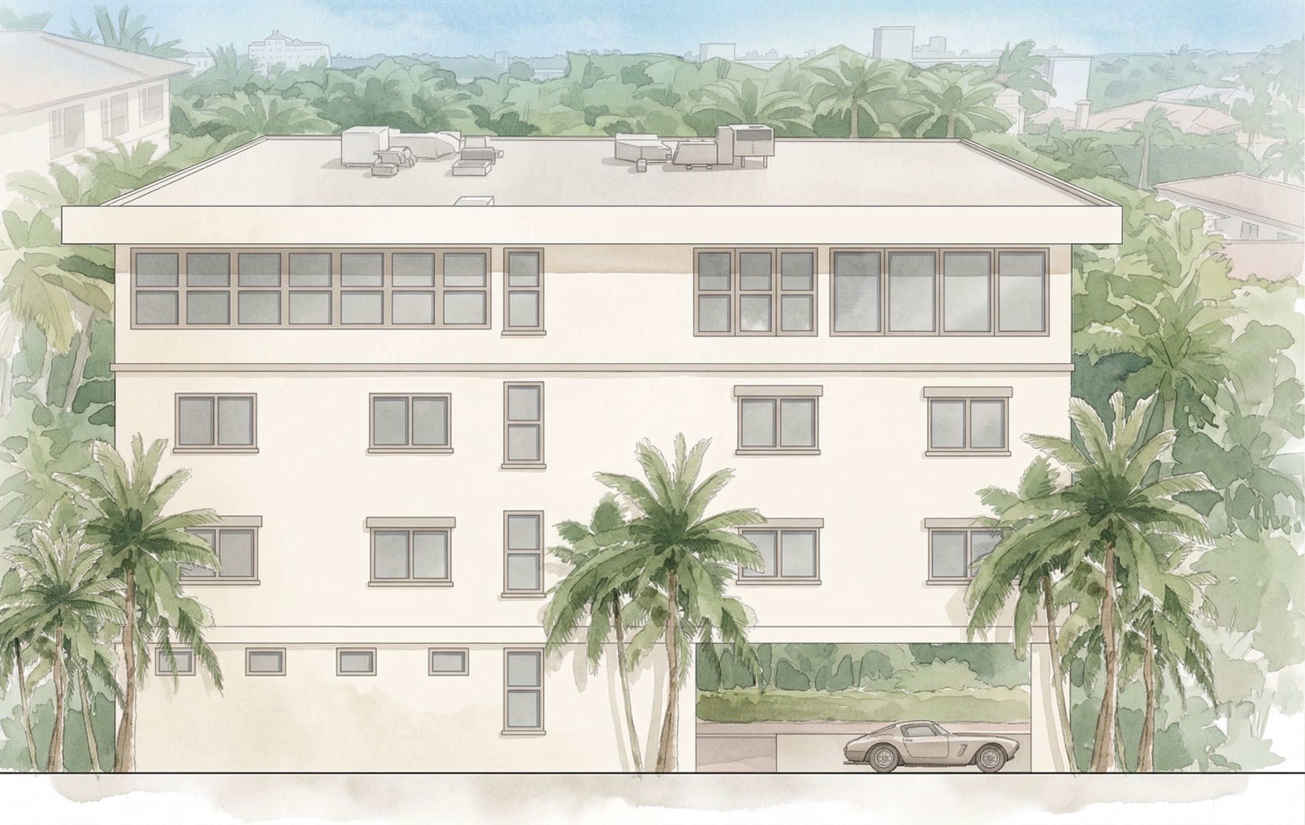 Maintain a clear, straight horizontal ground line where the building meets the ground and cars sit